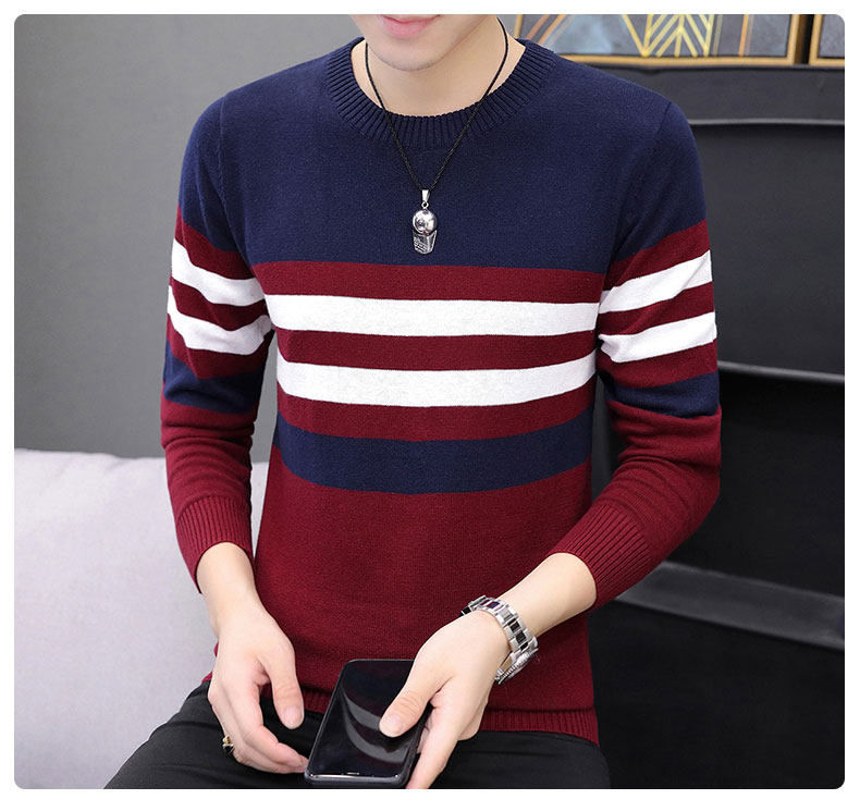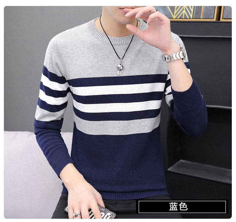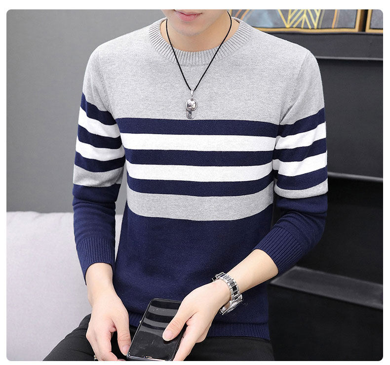 Мужской демисезонный хлопковый трикотажный свитер для отдыха с круглым воротником
