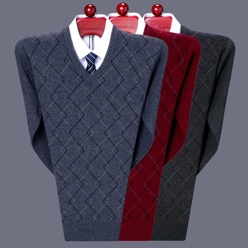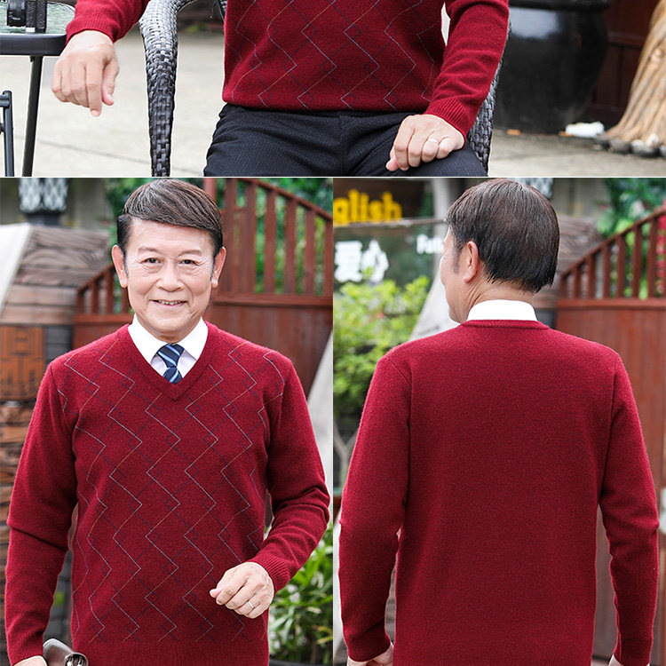 Красный оберег на день рождения, мужской трикотажный удерживающий тепло демисезонный свитер, V-образный вырез, увеличенная толщина