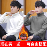 Мужской демисезонный утепленный базовый приятный телу шерстяной свитер, высокий воротник