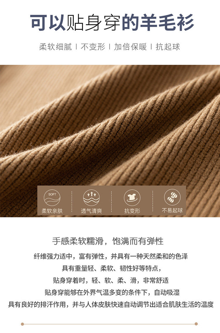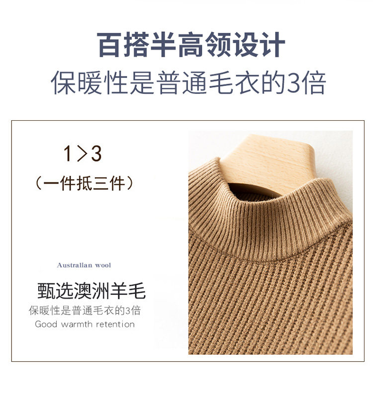 Демисезонный кашемировый шерстяной свитер, базовая трикотажная рубашка, высокий воротник, увеличенная толщина