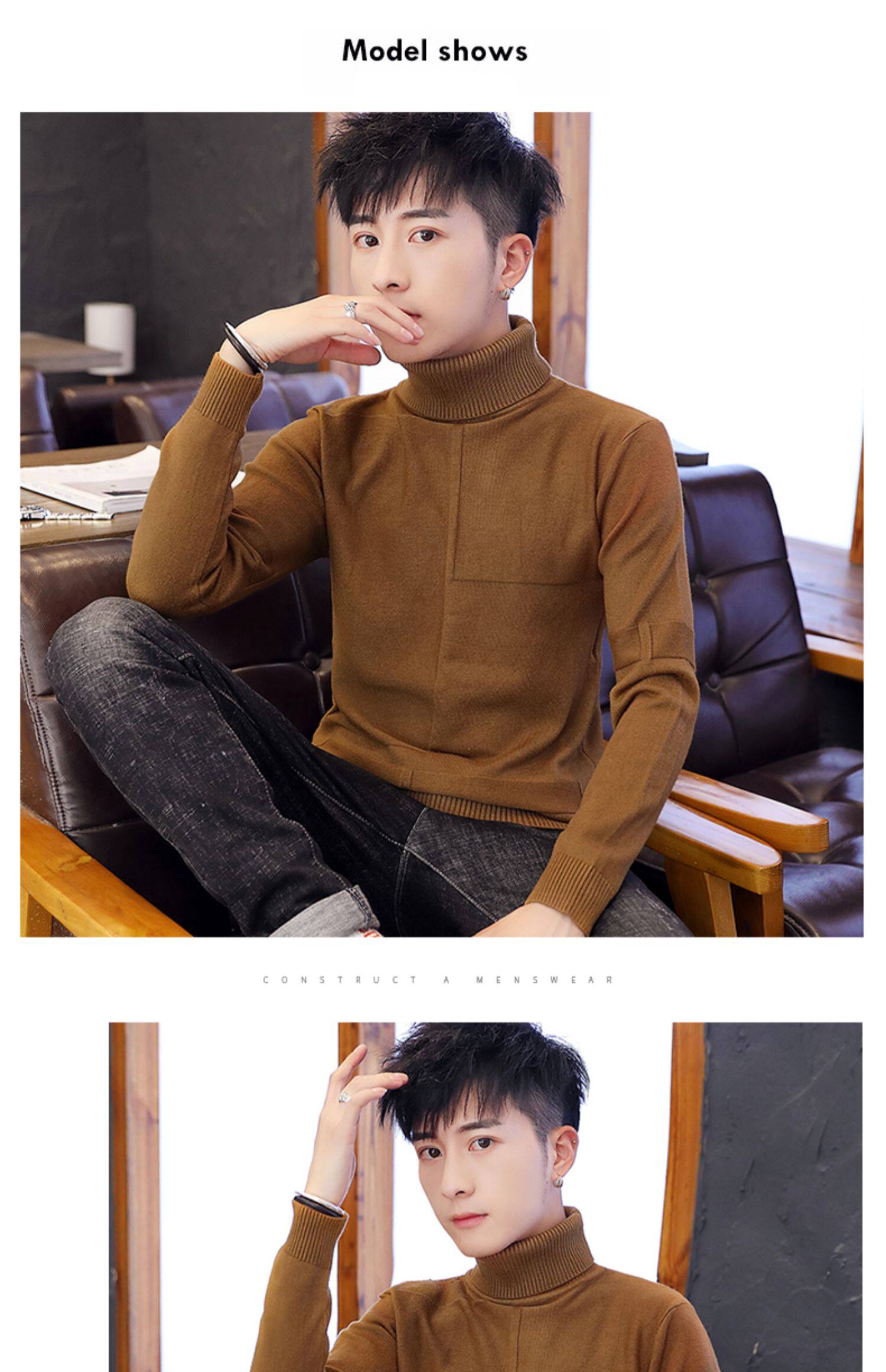 Зимний утепленный мужской цветной базовый приятный телу модный трикотажный свитер