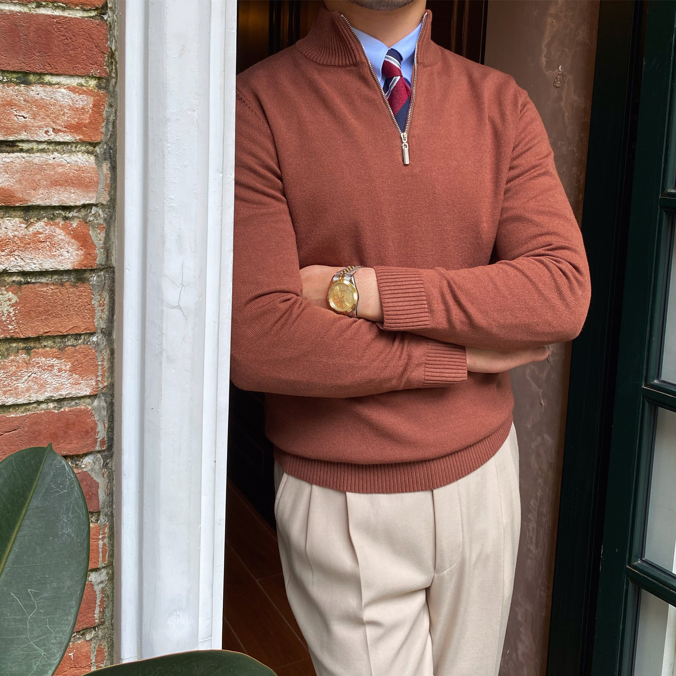 Демисезонный трикотажный лонгслив с молнией, свитер, облегающий крой