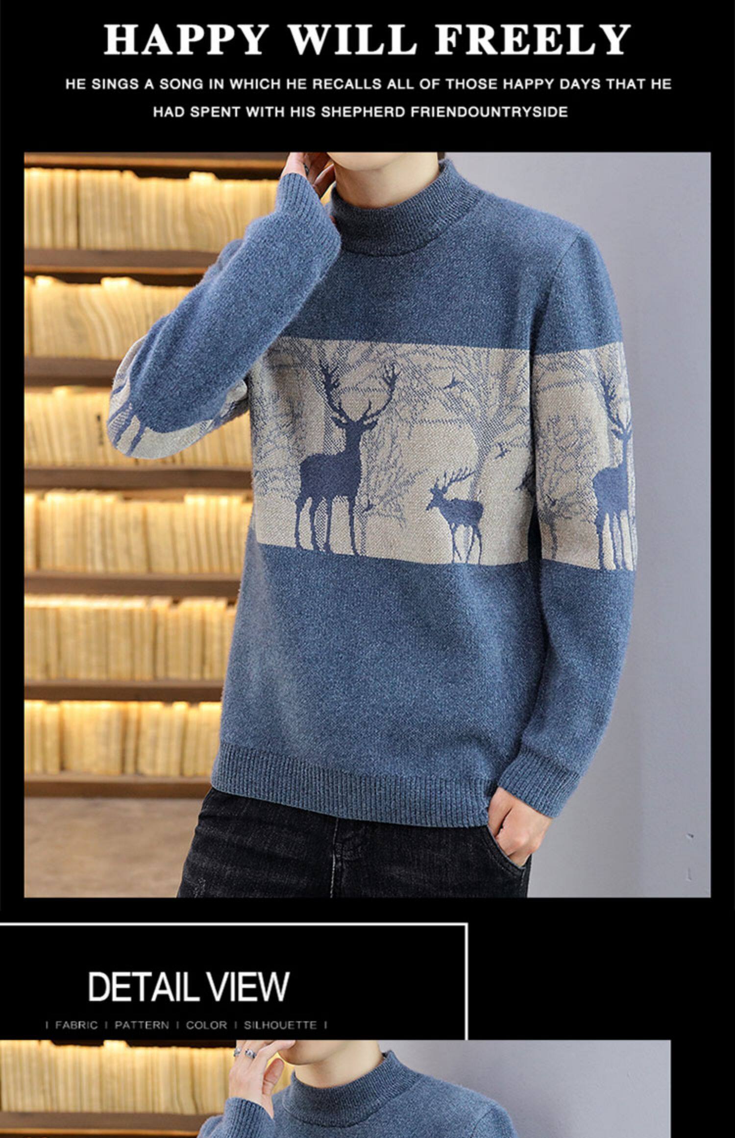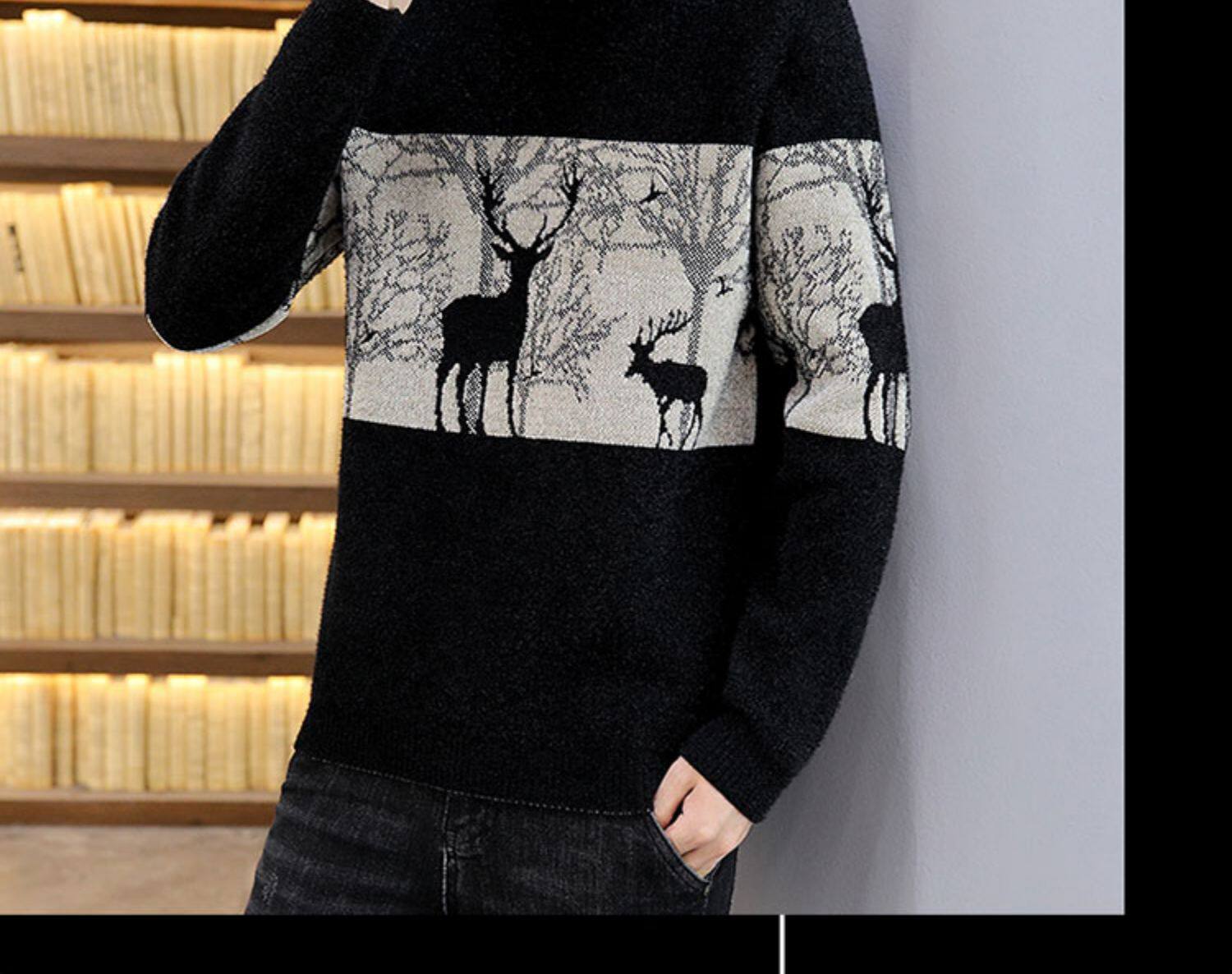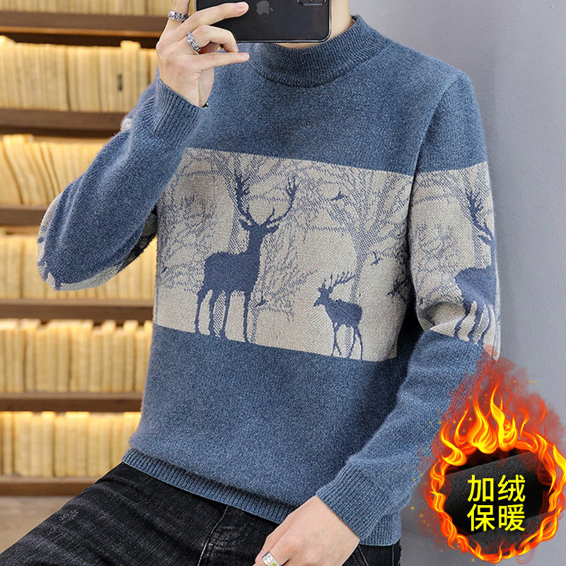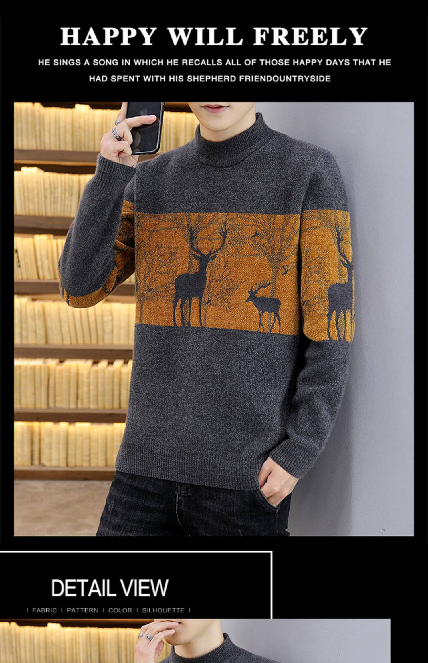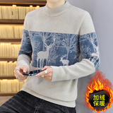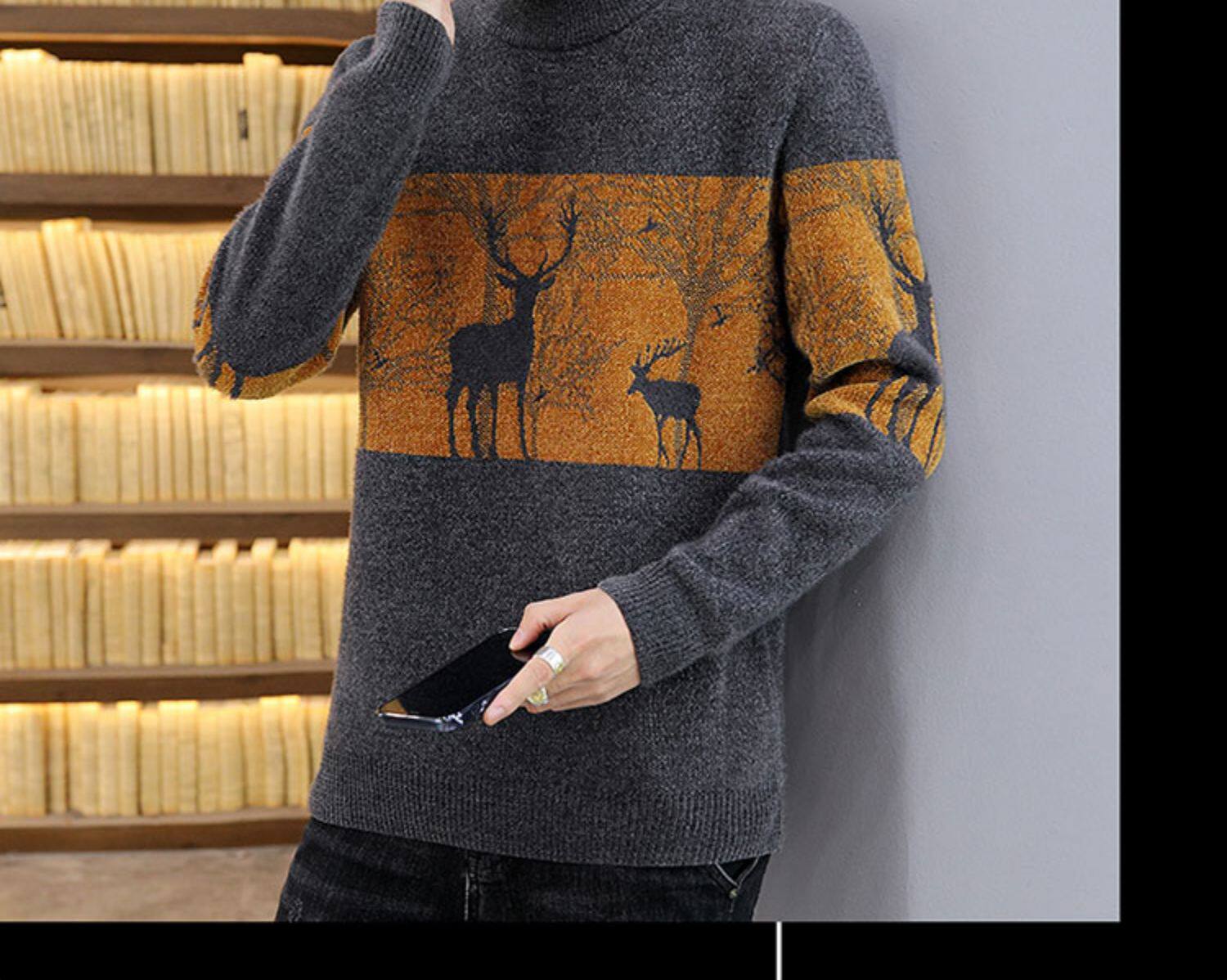 Мужской утепленный зимний шерстяной трендовый свитер с круглым воротником, в корейском стиле, высокий воротник, увеличенная толщина