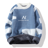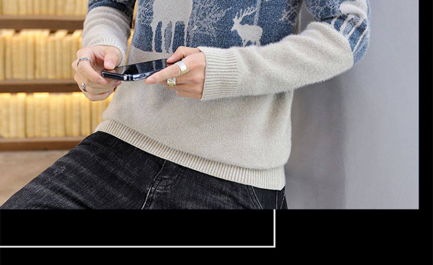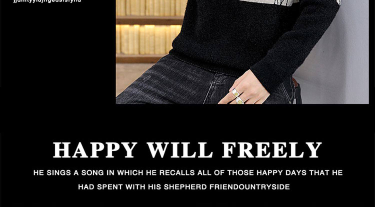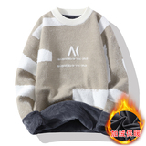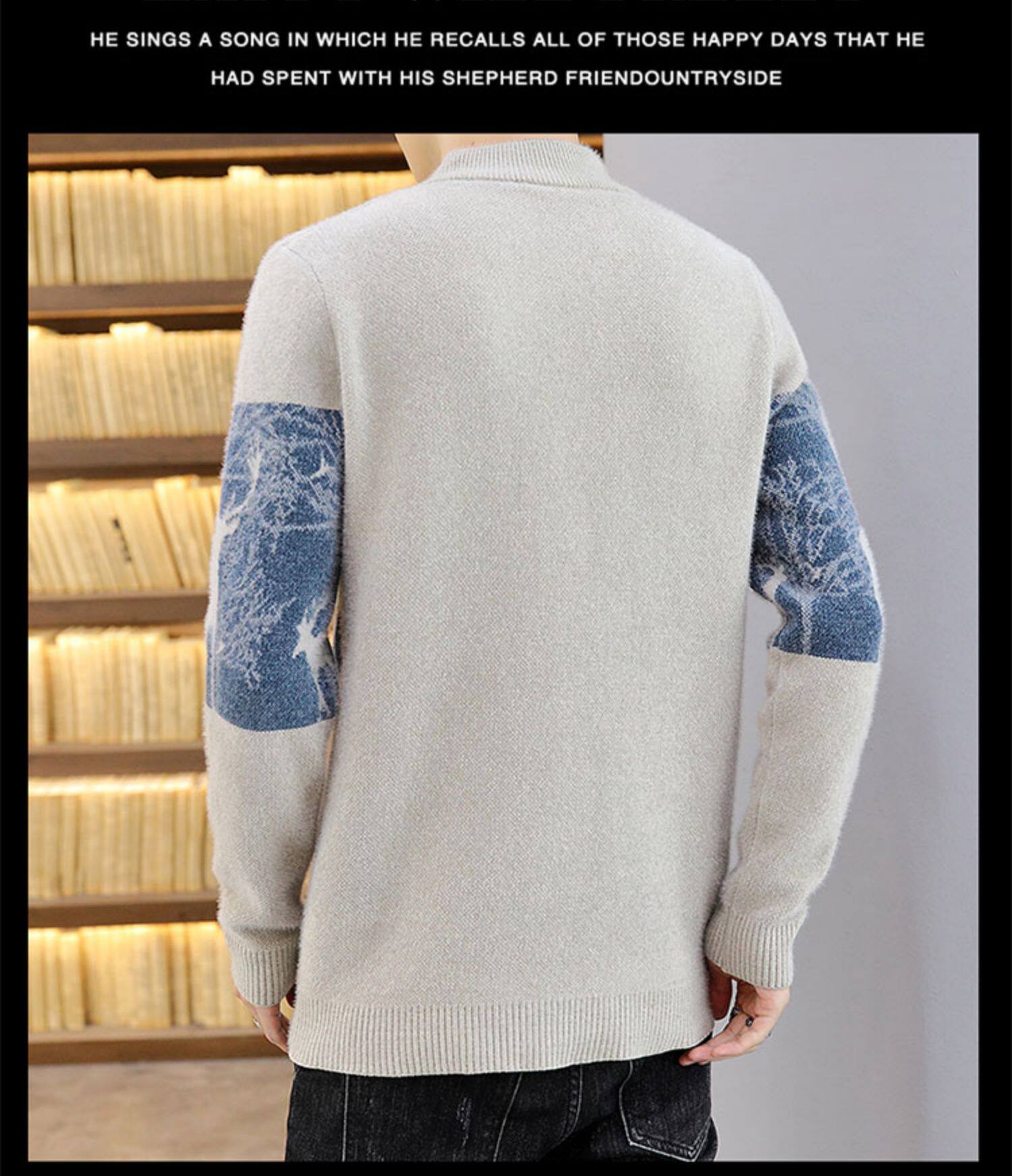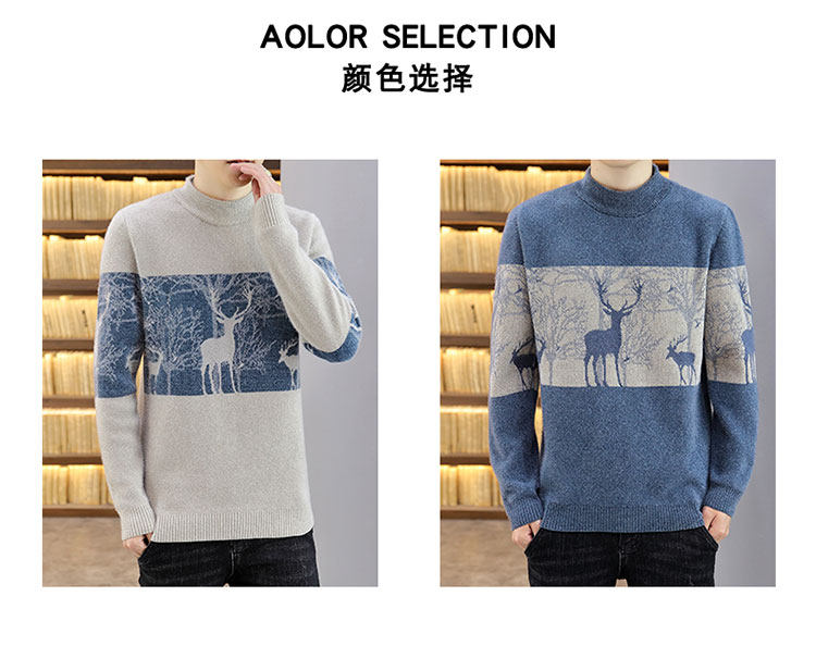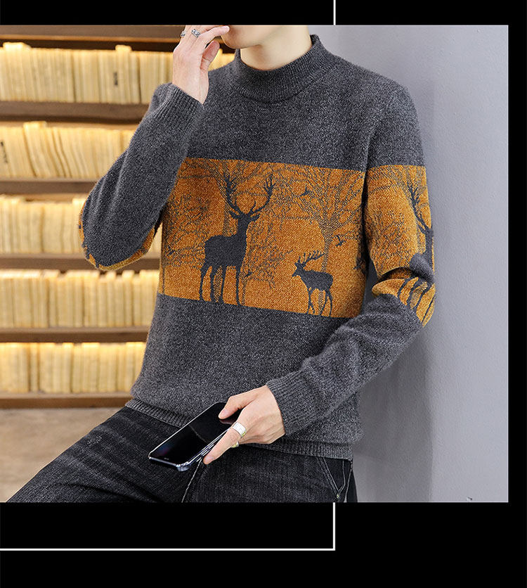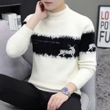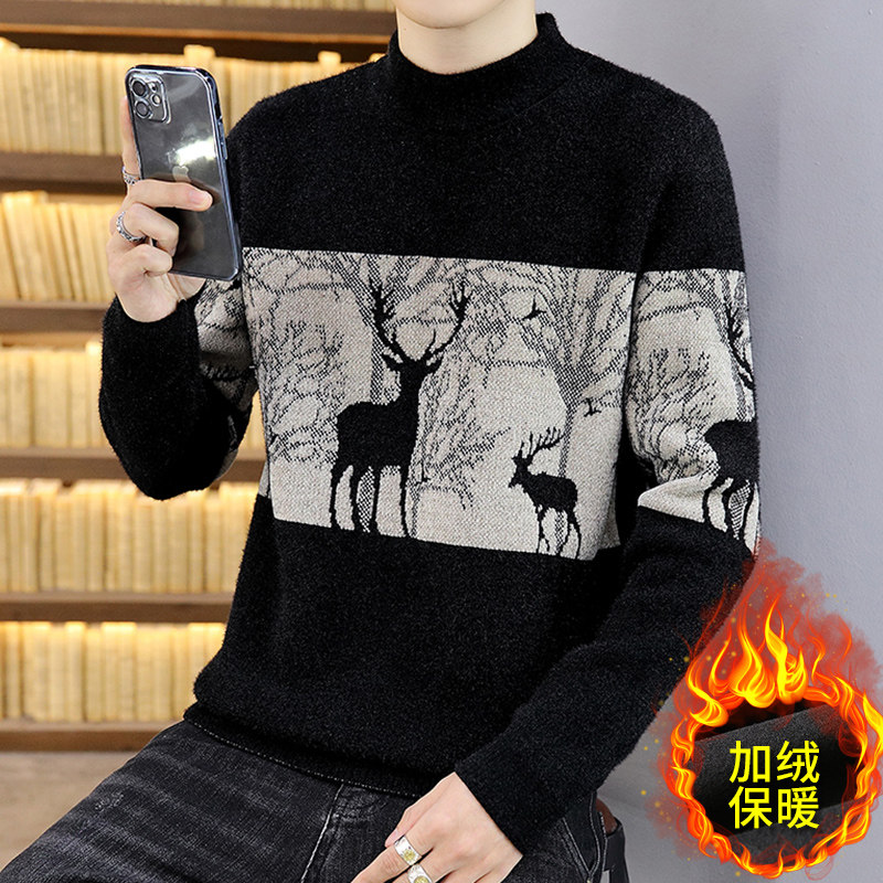 Мужской утепленный зимний шерстяной трендовый свитер с круглым воротником, в корейском стиле, высокий воротник, увеличенная толщина