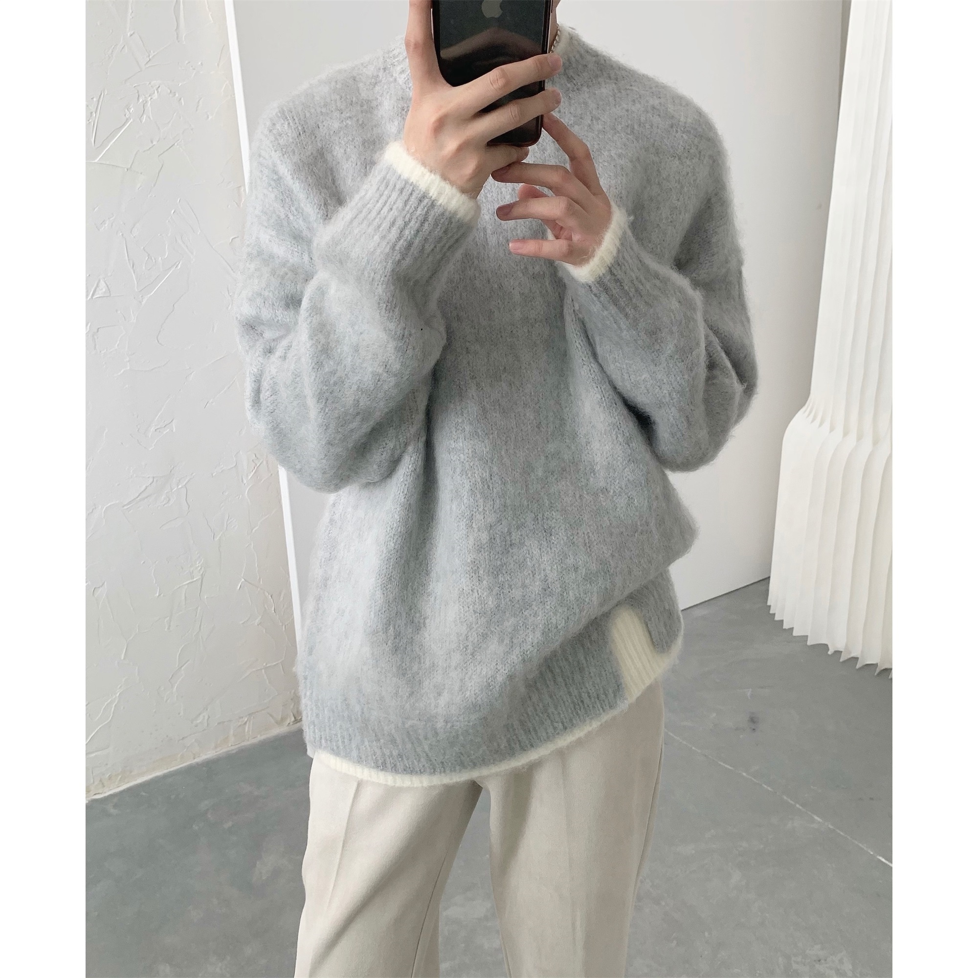 Цветной комплект, бархатный демисезонный японский свитер, трикотажная рубашка для отдыха, популярно в интернете