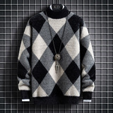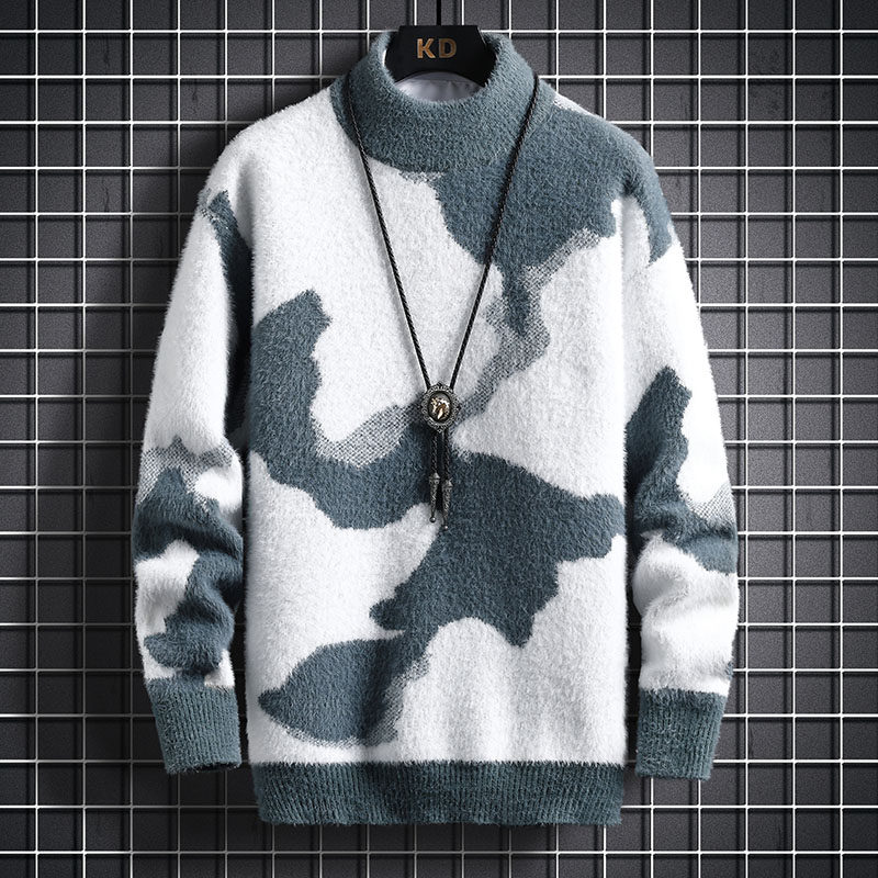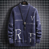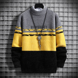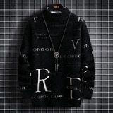 Мужской двусторонний бархатный демисезонный удерживающий тепло трикотажный трендовый шерстяной свитер с круглым воротником для школьников