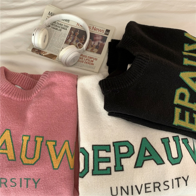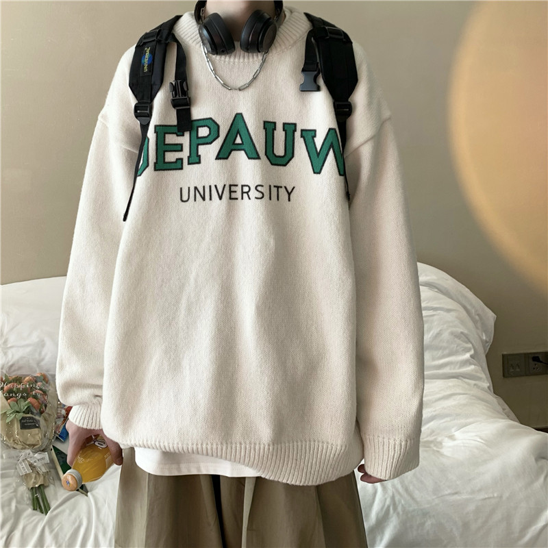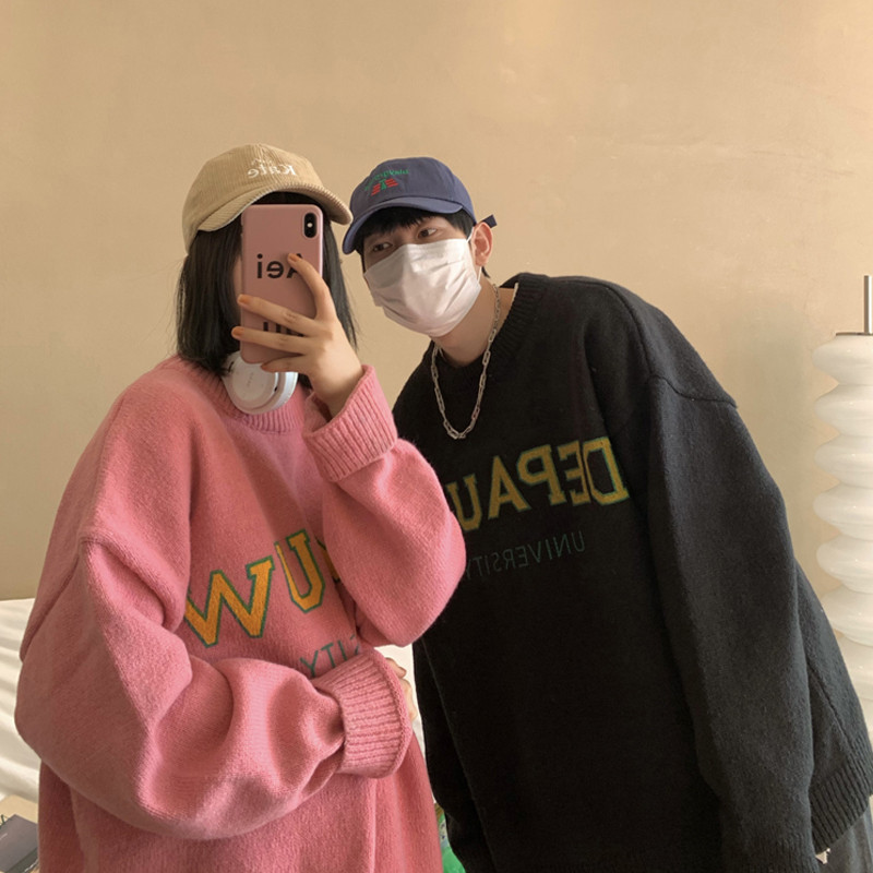 Демисезонный зимний трикотажный утепленный свитер с круглым воротником, оверсайз, для влюбленных
