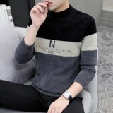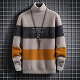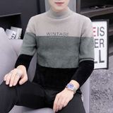 Мужской демисезонный трендовый утепленный трикотажный кашемировый свитер, высокий воротник, в корейском стиле
