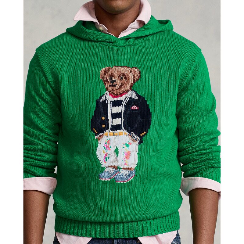Ralph lauren, летний трикотажный свитер с капюшоном, 22 года, с медвежатами