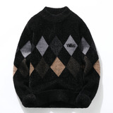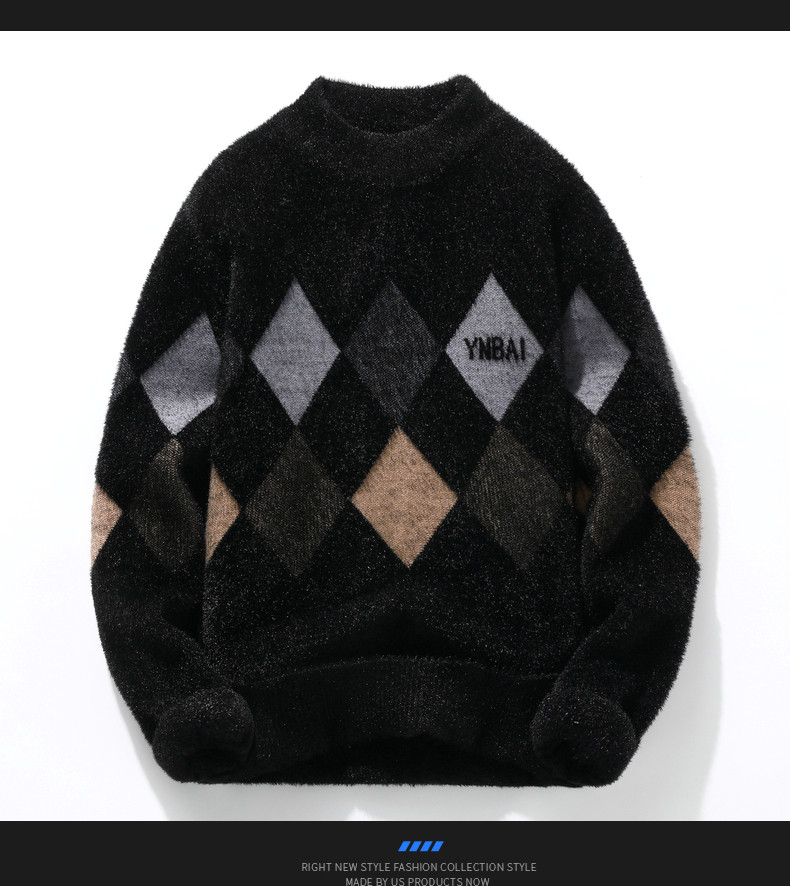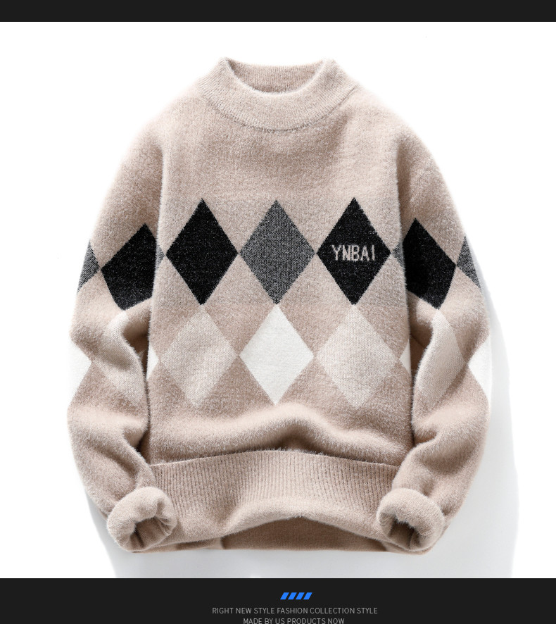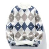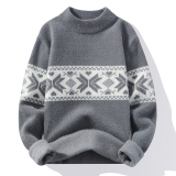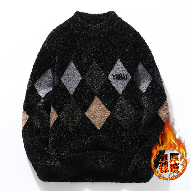 Мужской шерстяной демисезонный удерживающий тепло трикотажный трендовый бархатный базовый приятный телу свитер с круглым воротником, увеличенная толщина