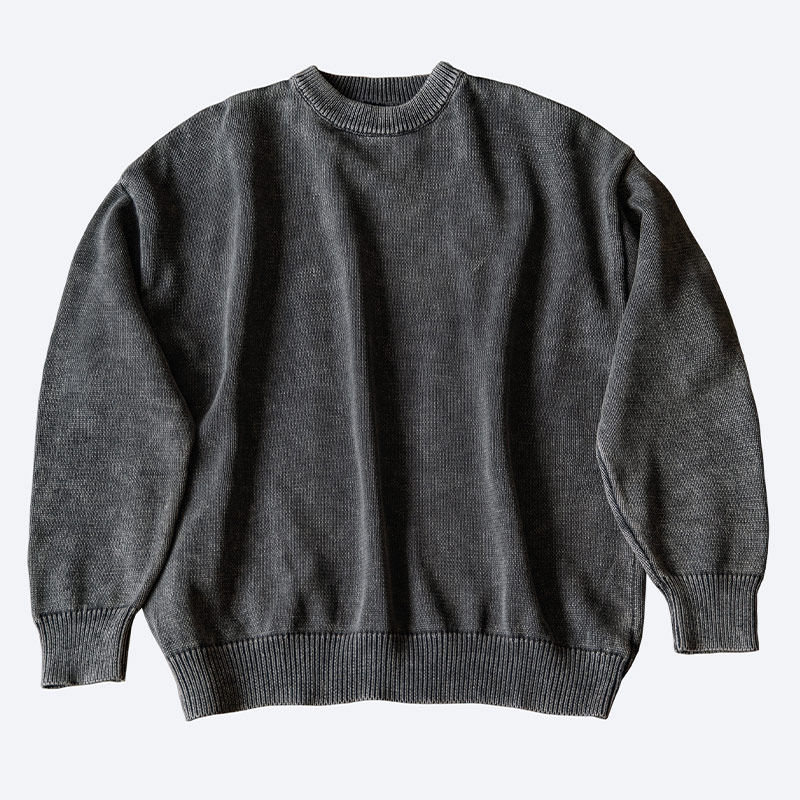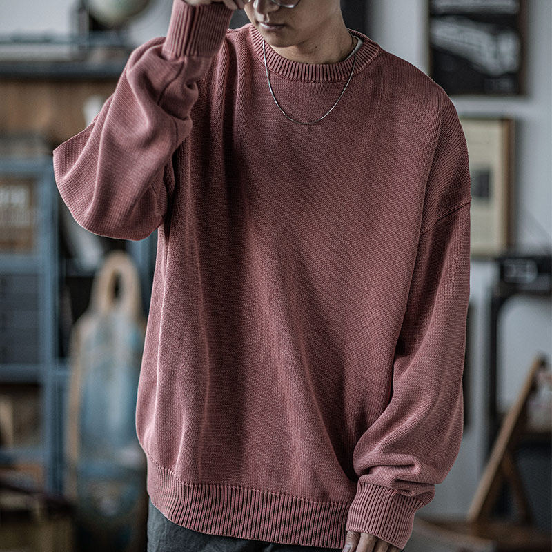 Ретро хлопковый свитер с круглым воротником, трикотажная утепленный лонгслив
