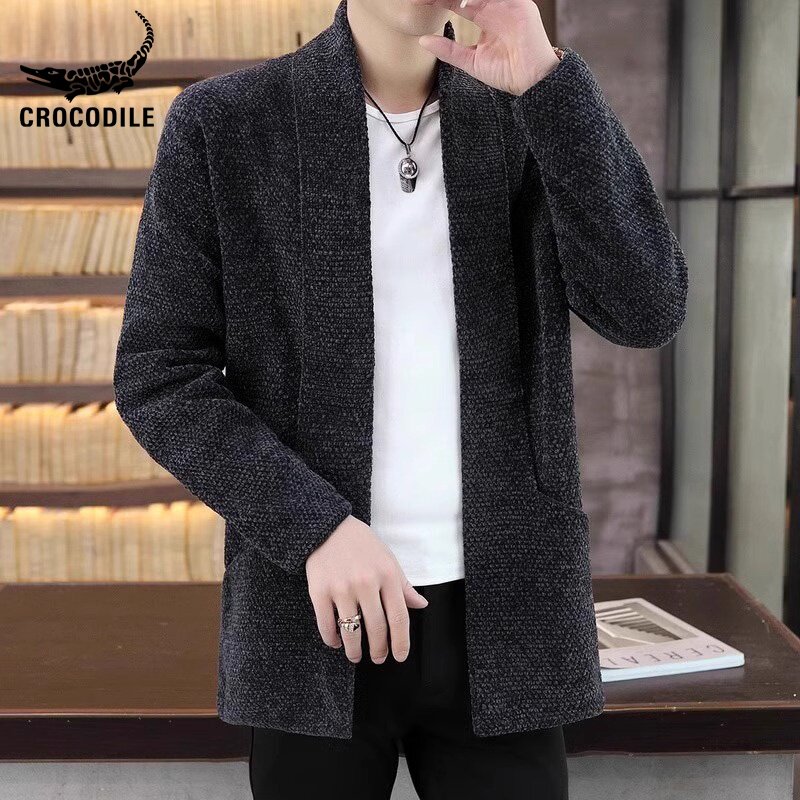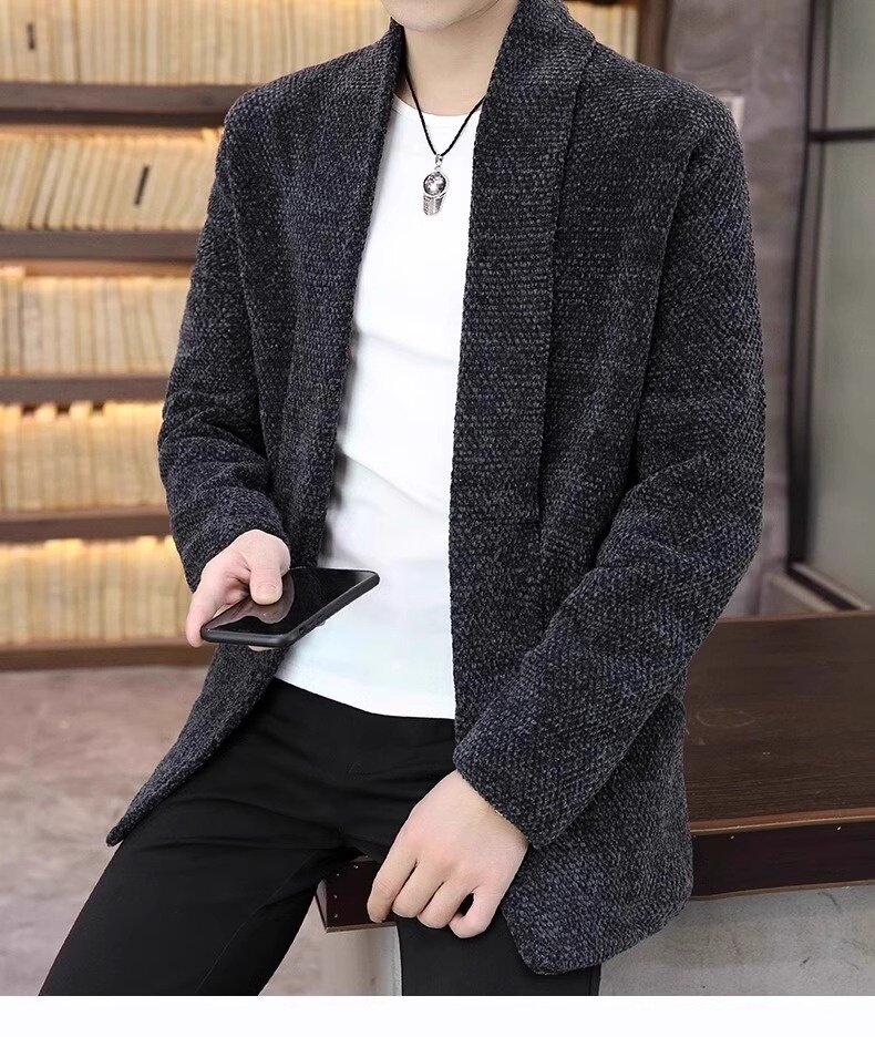 Кардиган, мужской длинный демисезонный трикотажный свитер, средней длины, в корейском стиле