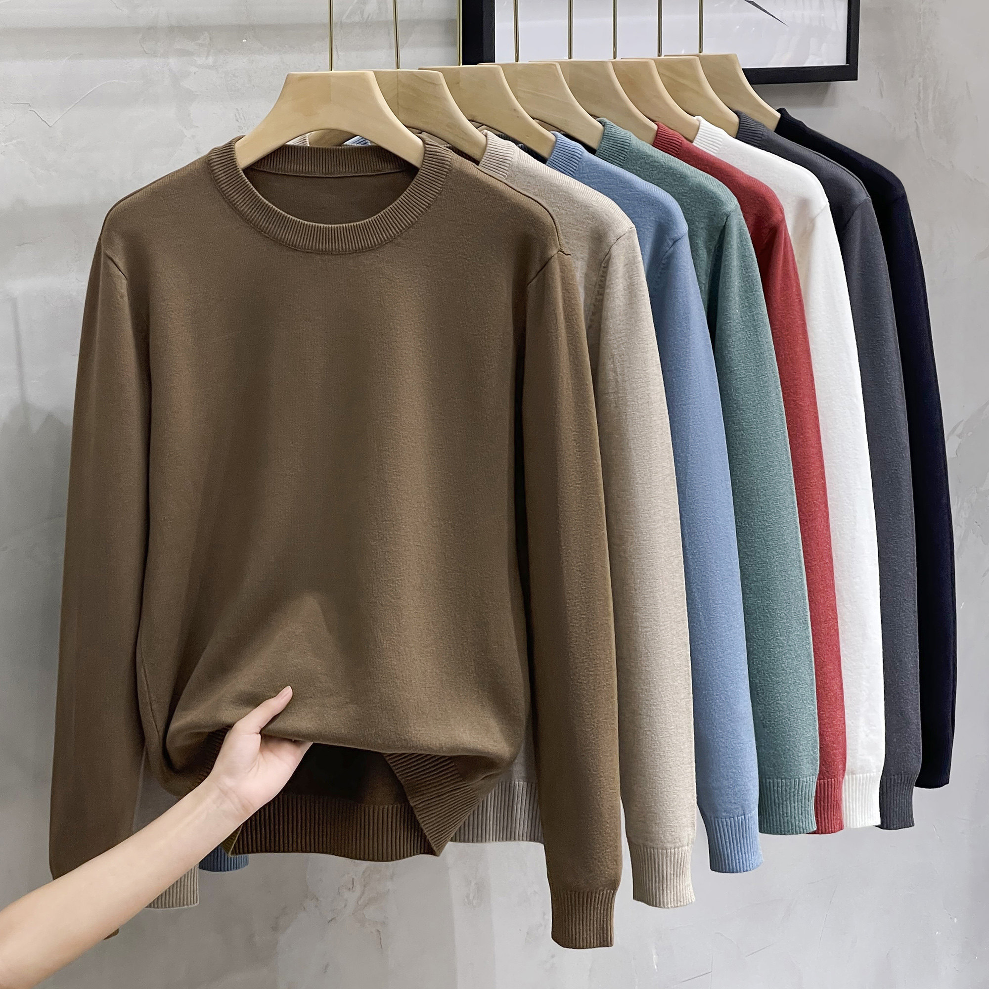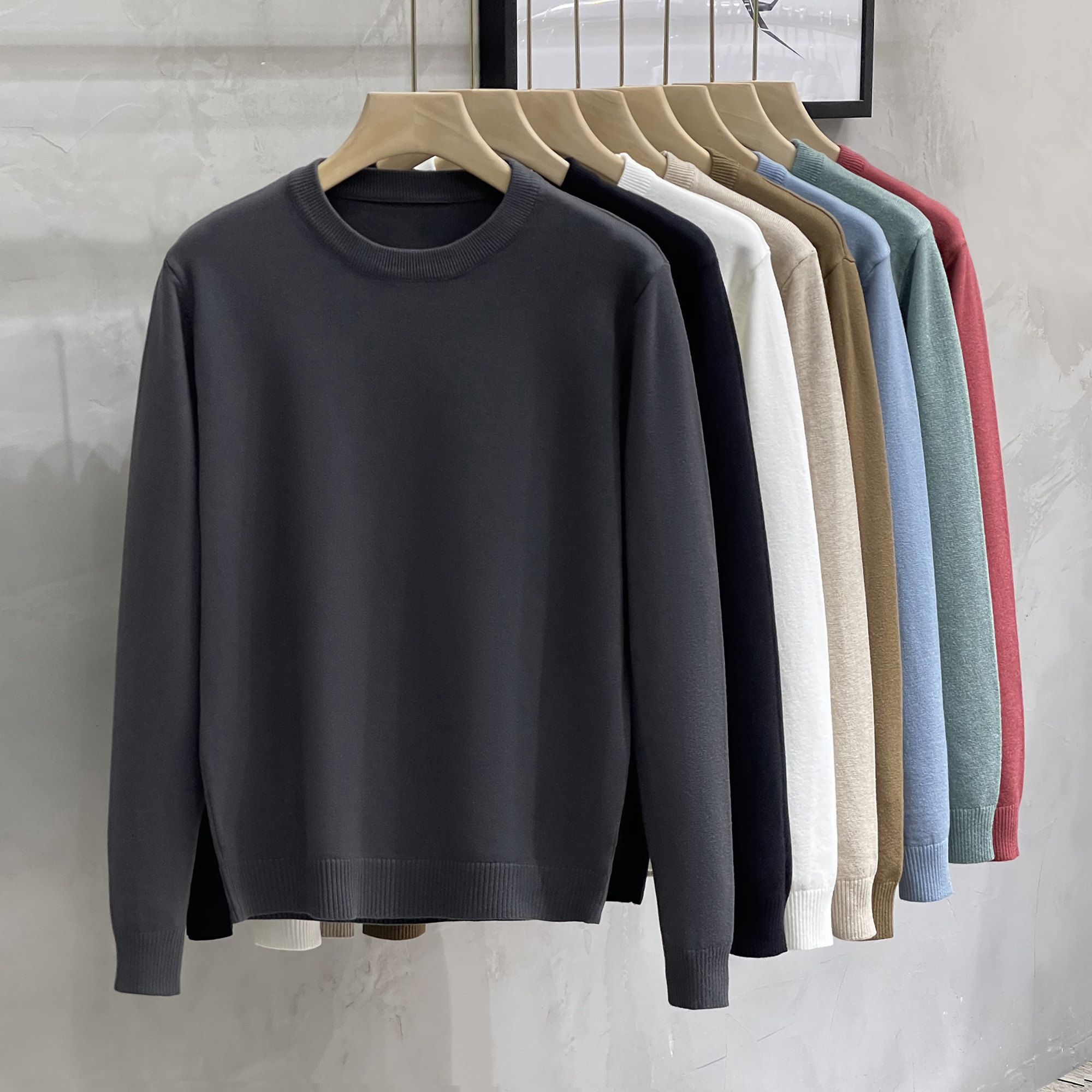 Однотонный базовый приятный телу мужской осенний шерстяной трикотажный свитер с круглым воротником, модель весна/осень 2025 года