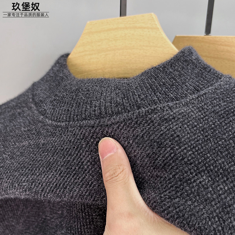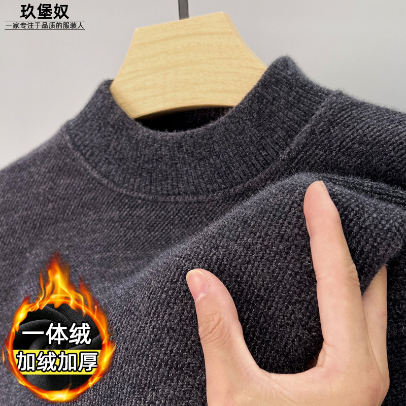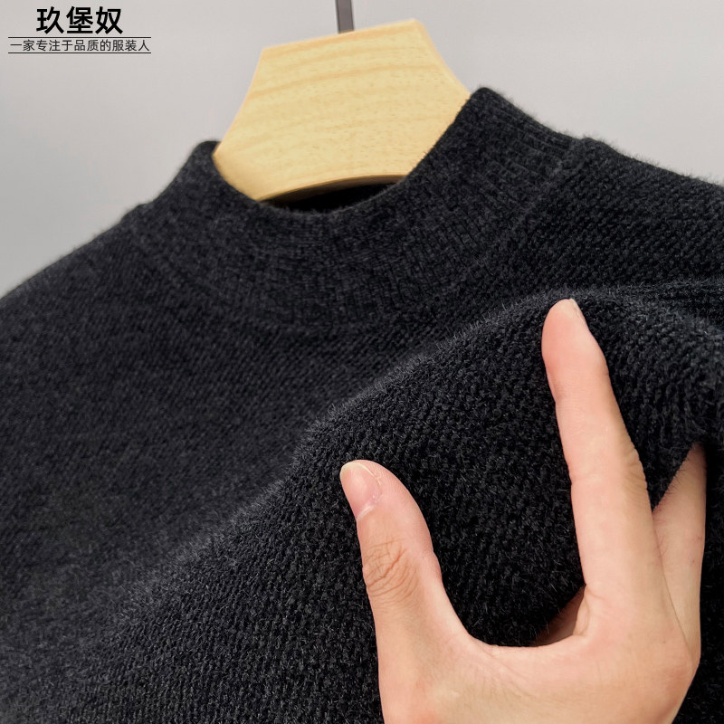 Мужской бархатный утепленный свитер, утепленное термобелье, удерживающий тепло базовый приятный телу пуховик, высокий воротник