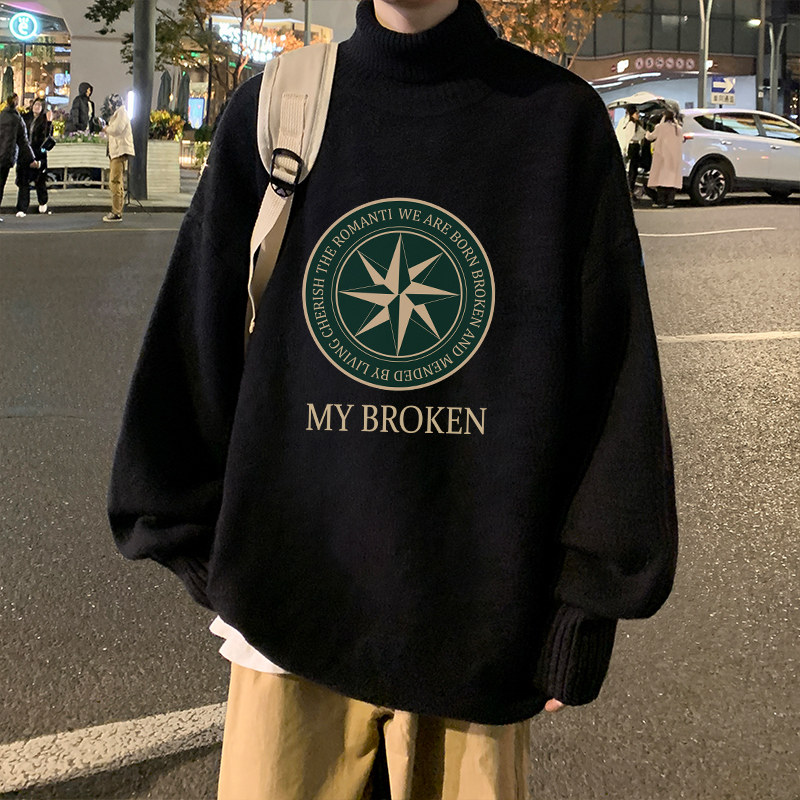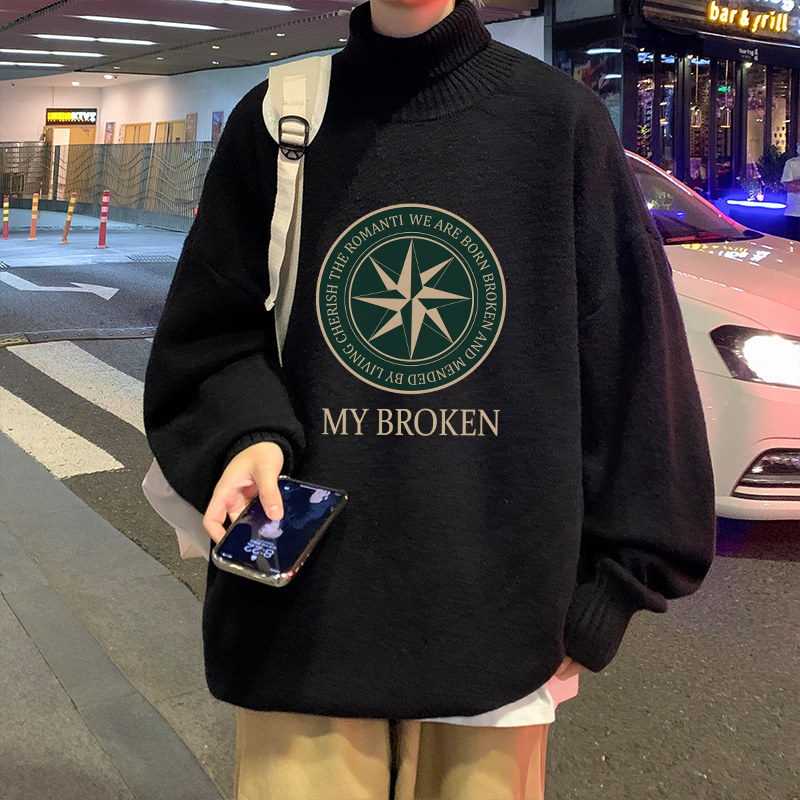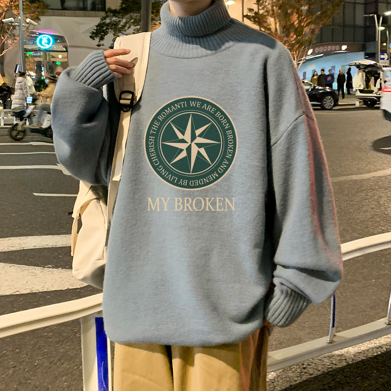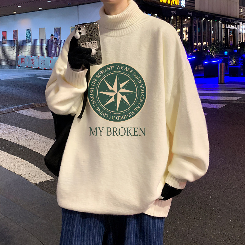 Мужской утепленный трендовый трикотажный свитер, большой размер