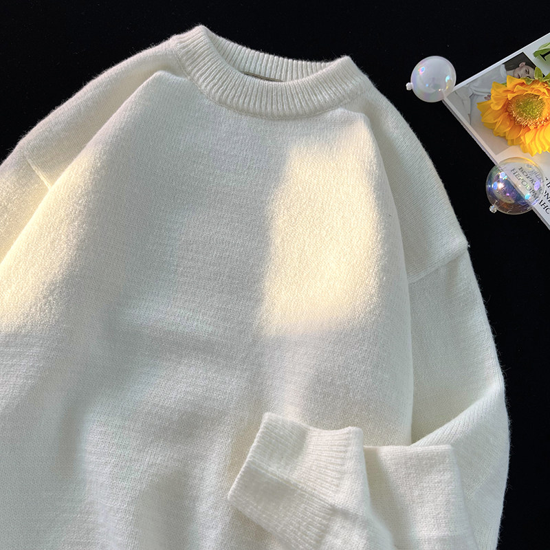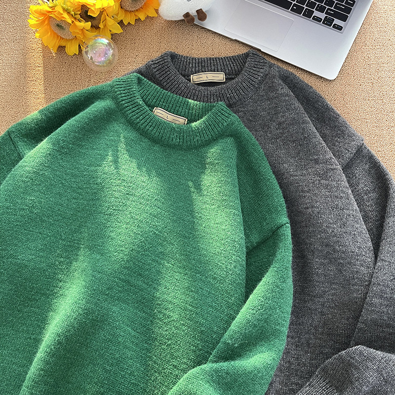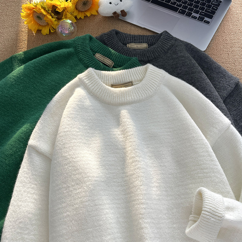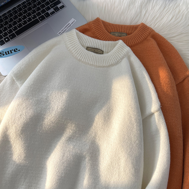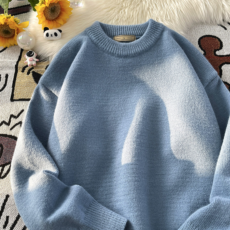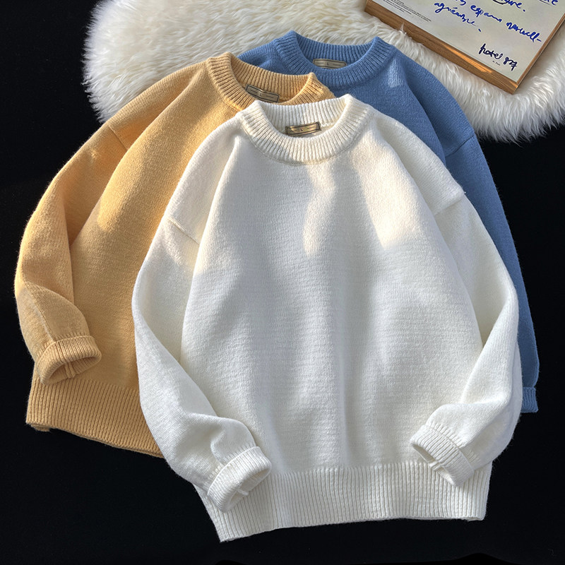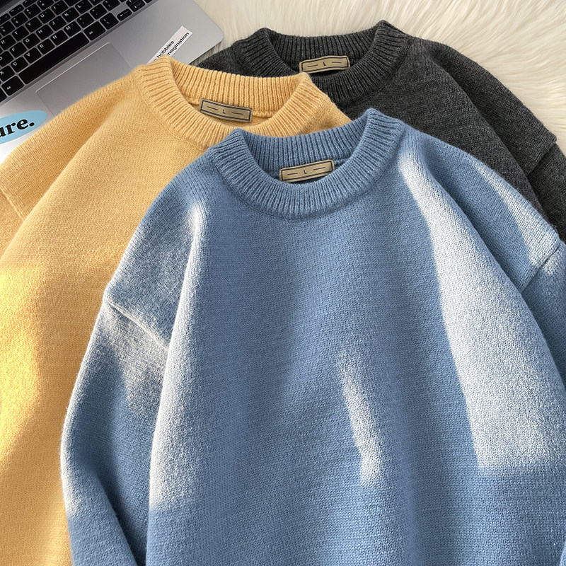 Tide, демисезонный свитер, трикотажные трендовые базовые джинсы с начесом с круглым воротником, в корейском стиле