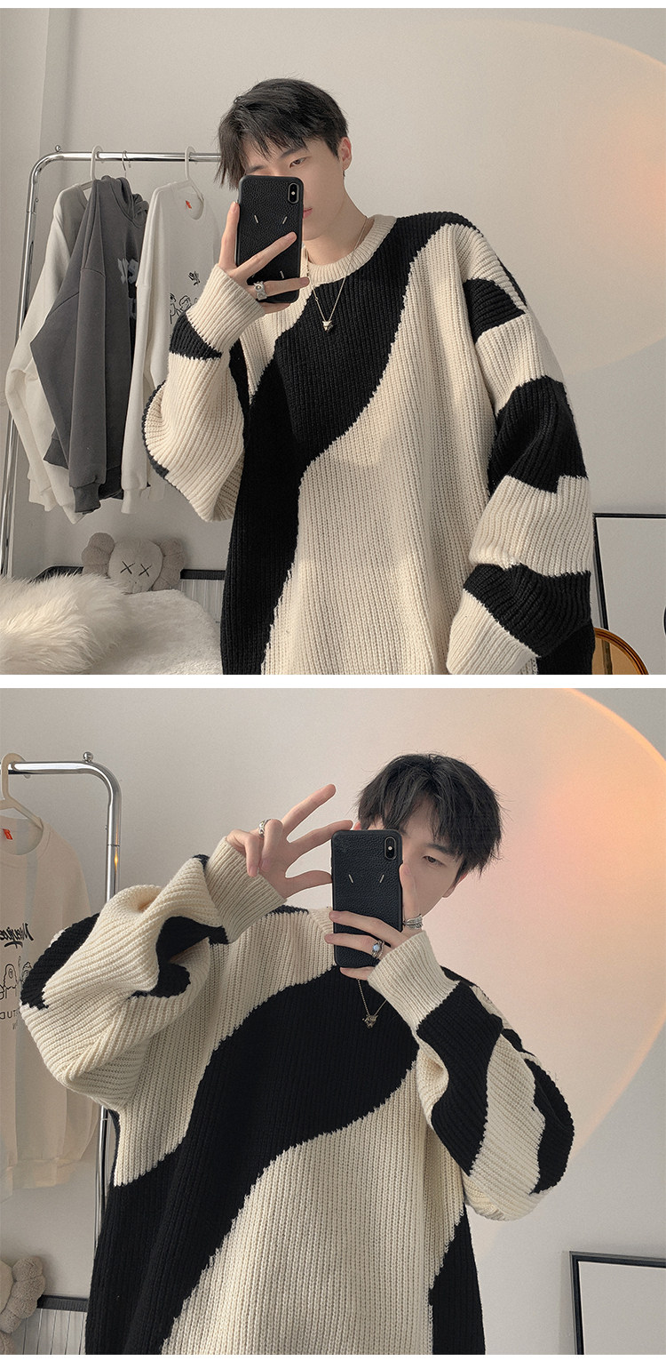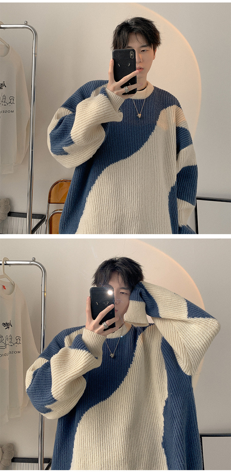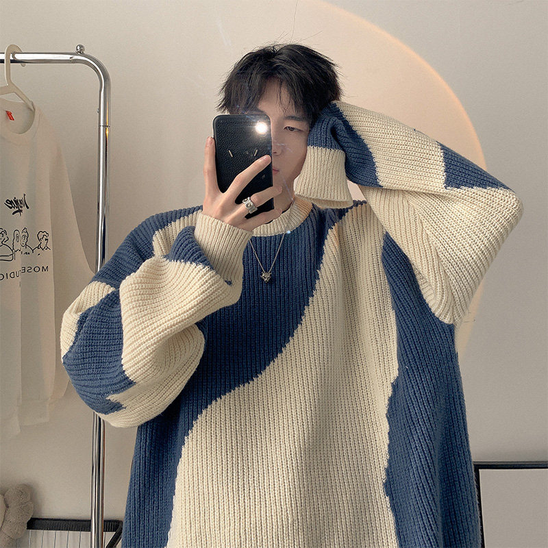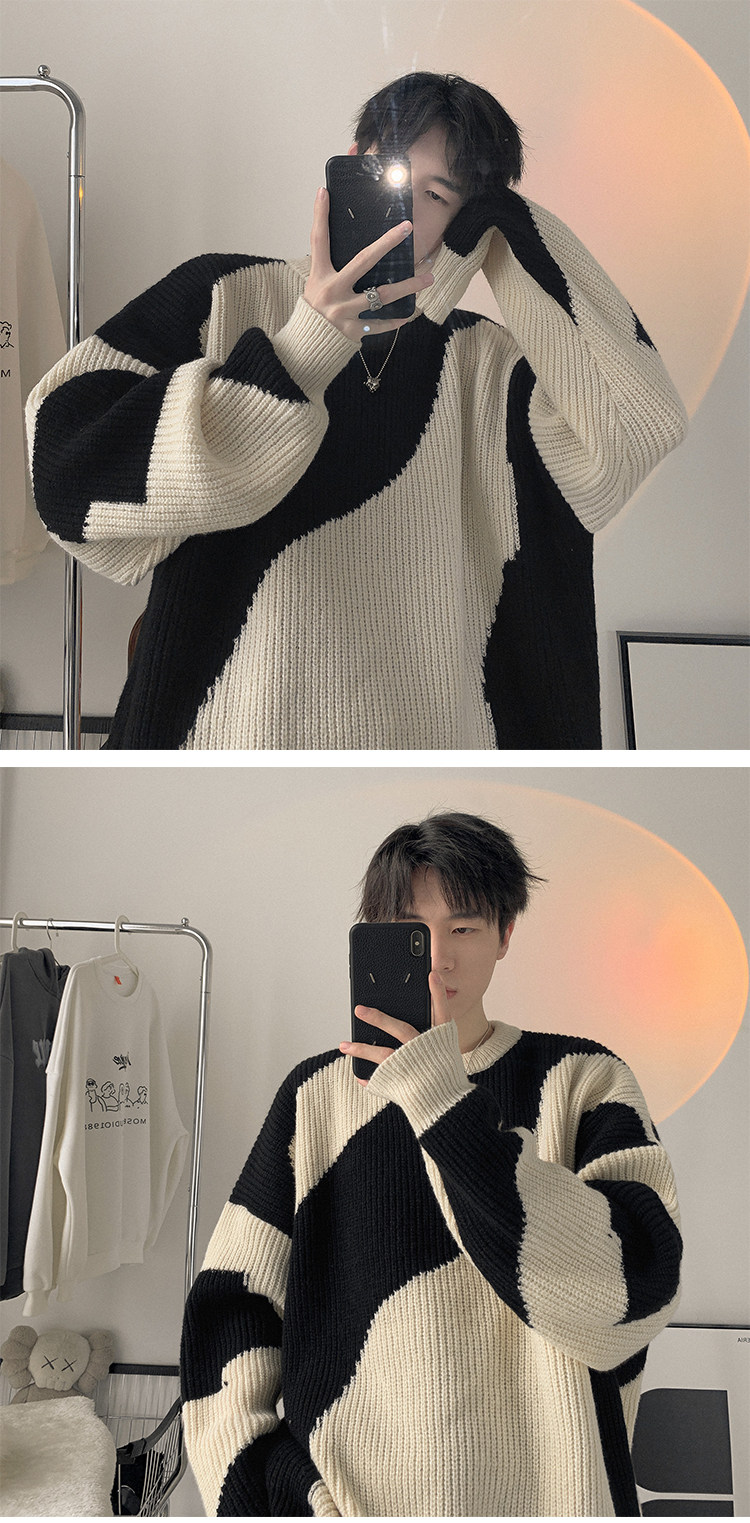 Мужской зимний трикотажный свитер, в американском стиле, оверсайз