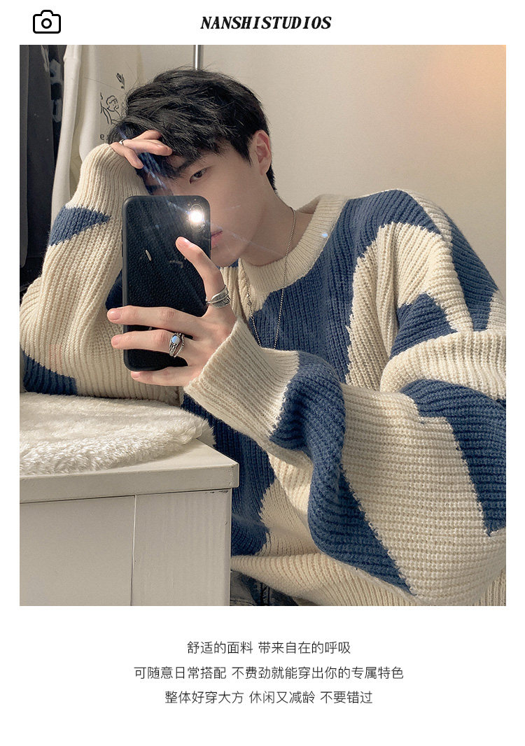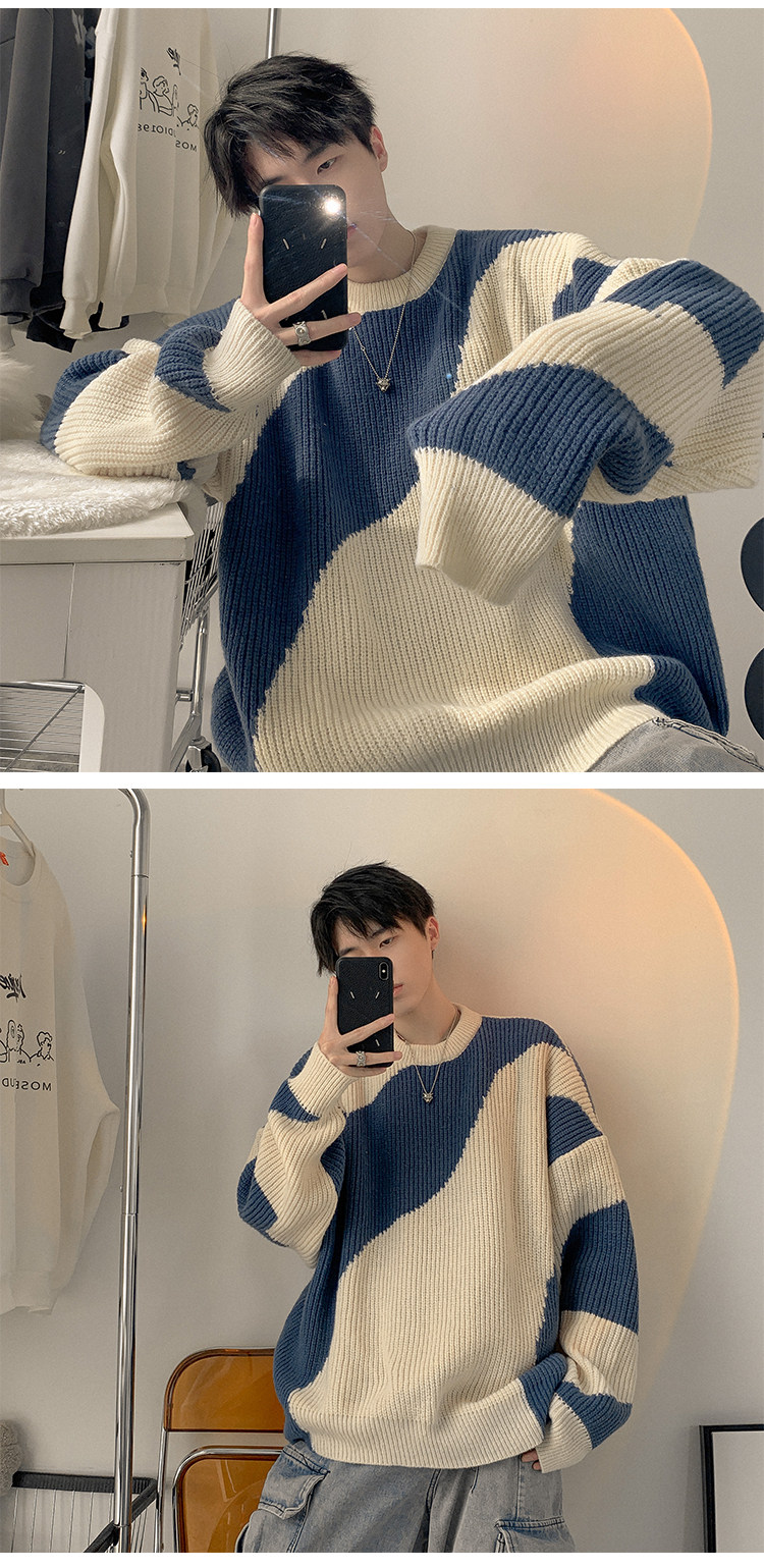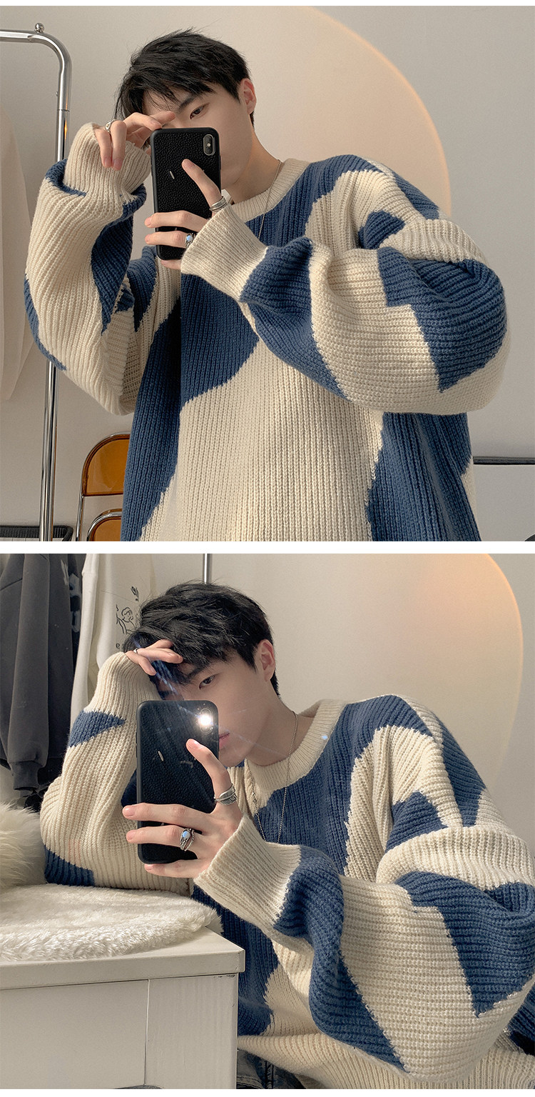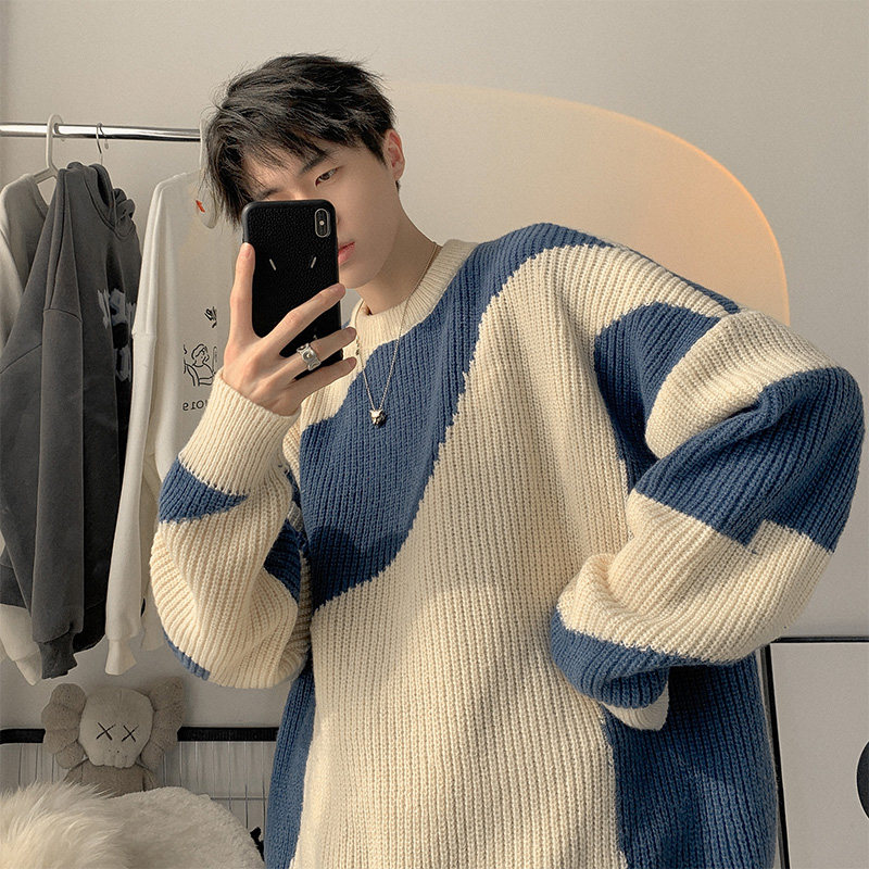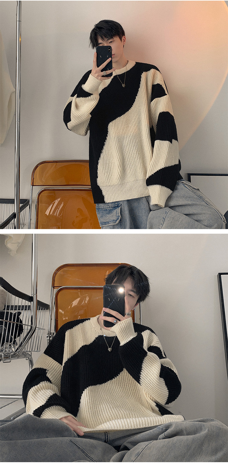 Мужской зимний трикотажный свитер, в американском стиле, оверсайз