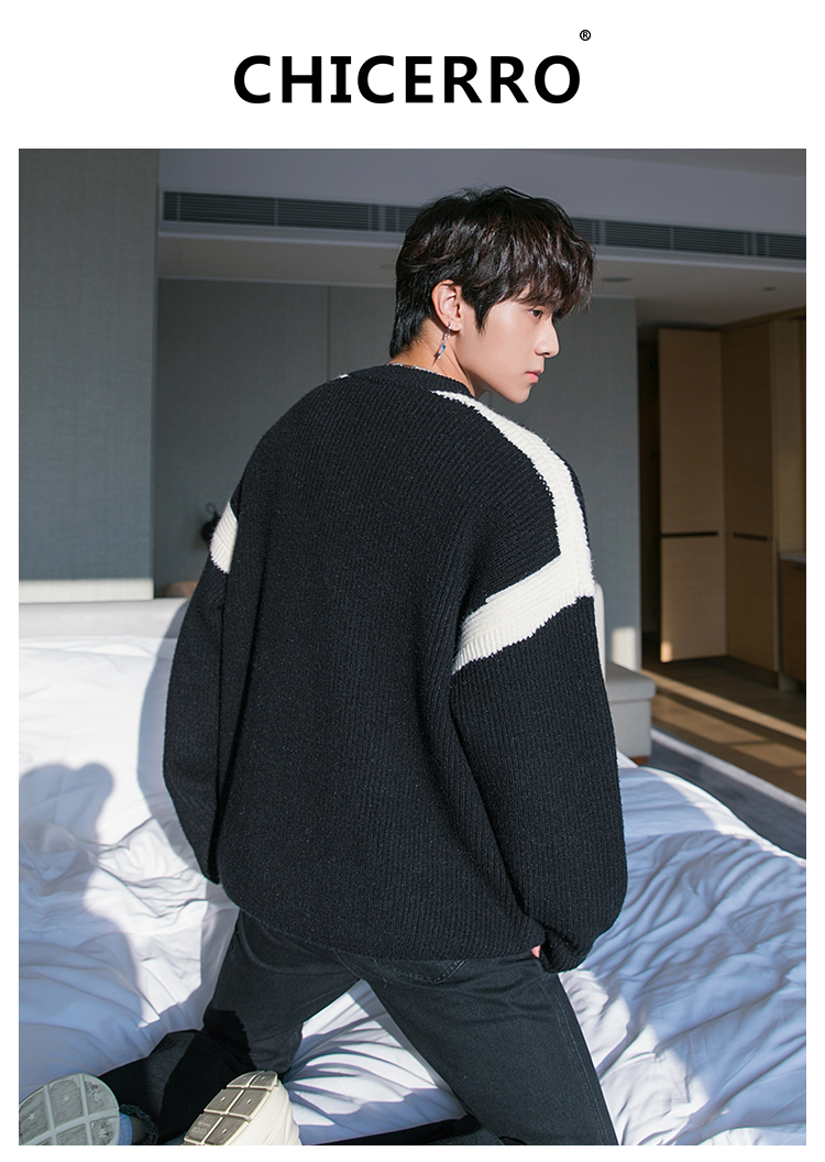 CHICERRO Трикотажная трендовая куртка для влюбленных, демисезонный свитер, оверсайз