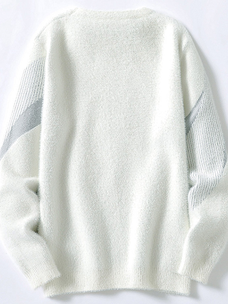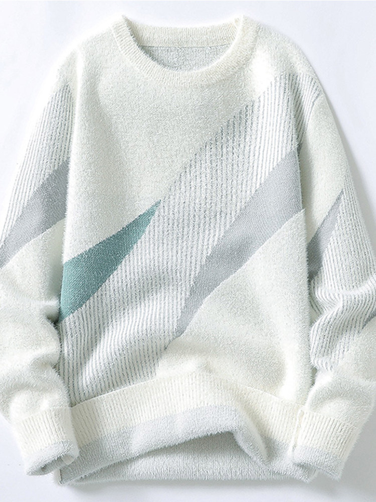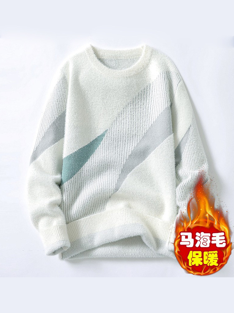 Мужской бархатный зимний трикотажный флисовый свитер с круглым воротником для отдыха