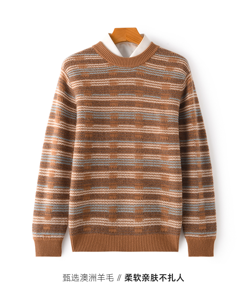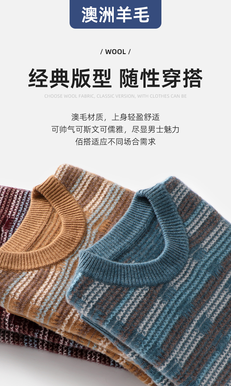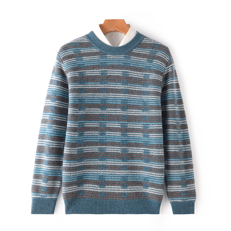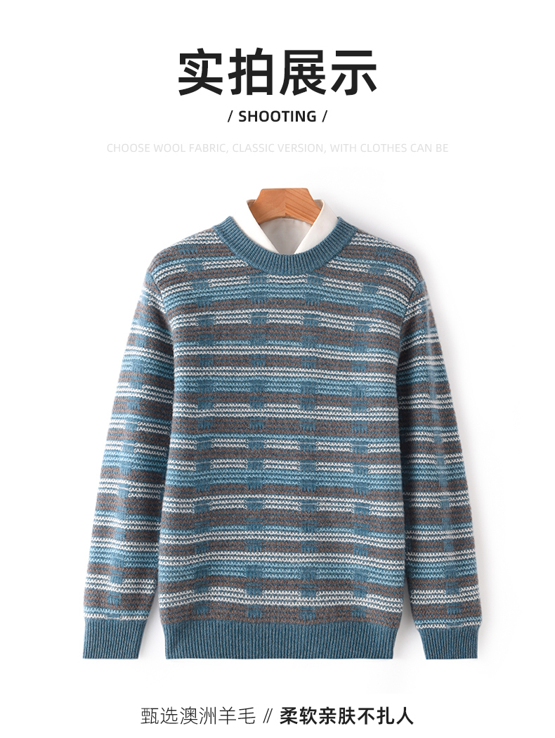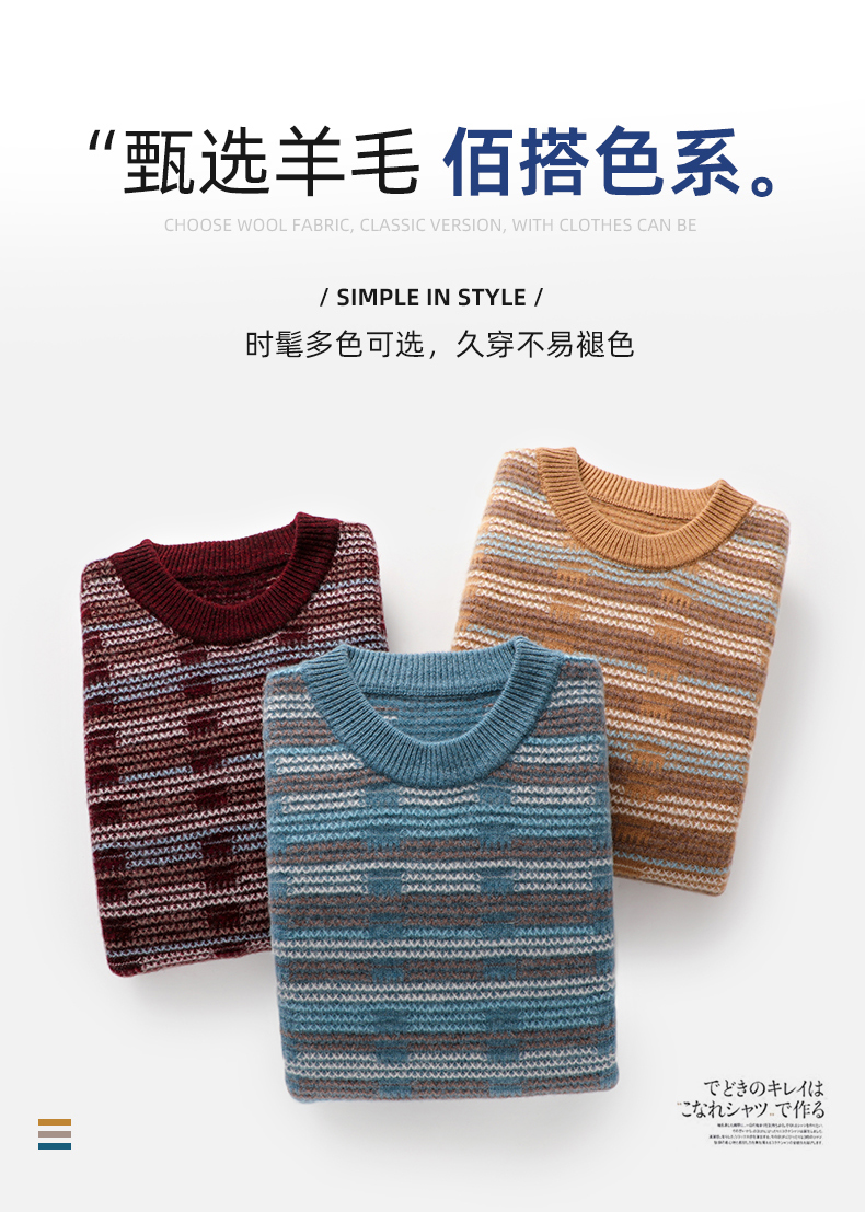 Мужской демисезонный шерстяной трикотажный бархатный свитер, увеличенная толщина, круглый воротник