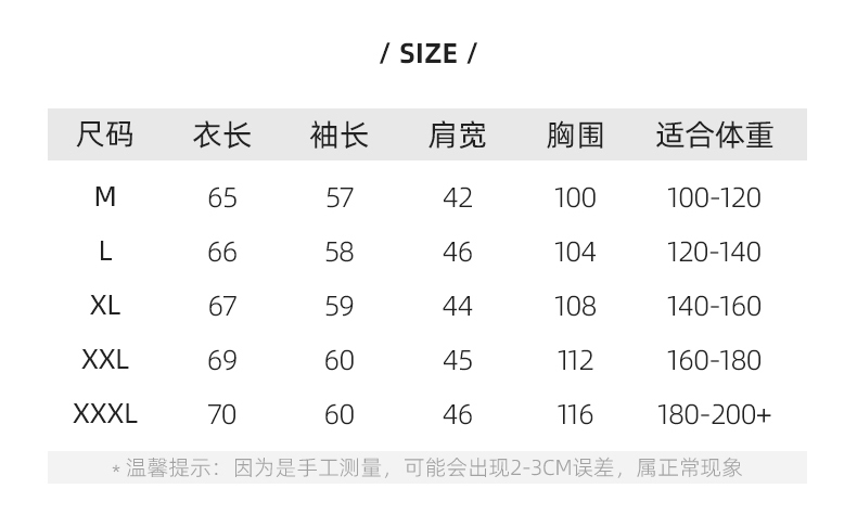 | Размер: | М [100-120 котлих], L [120-140 Catties], XL [140-160 Catties], 2xl [160-180 Catties], 3xl 【1801-200 Catties】 |