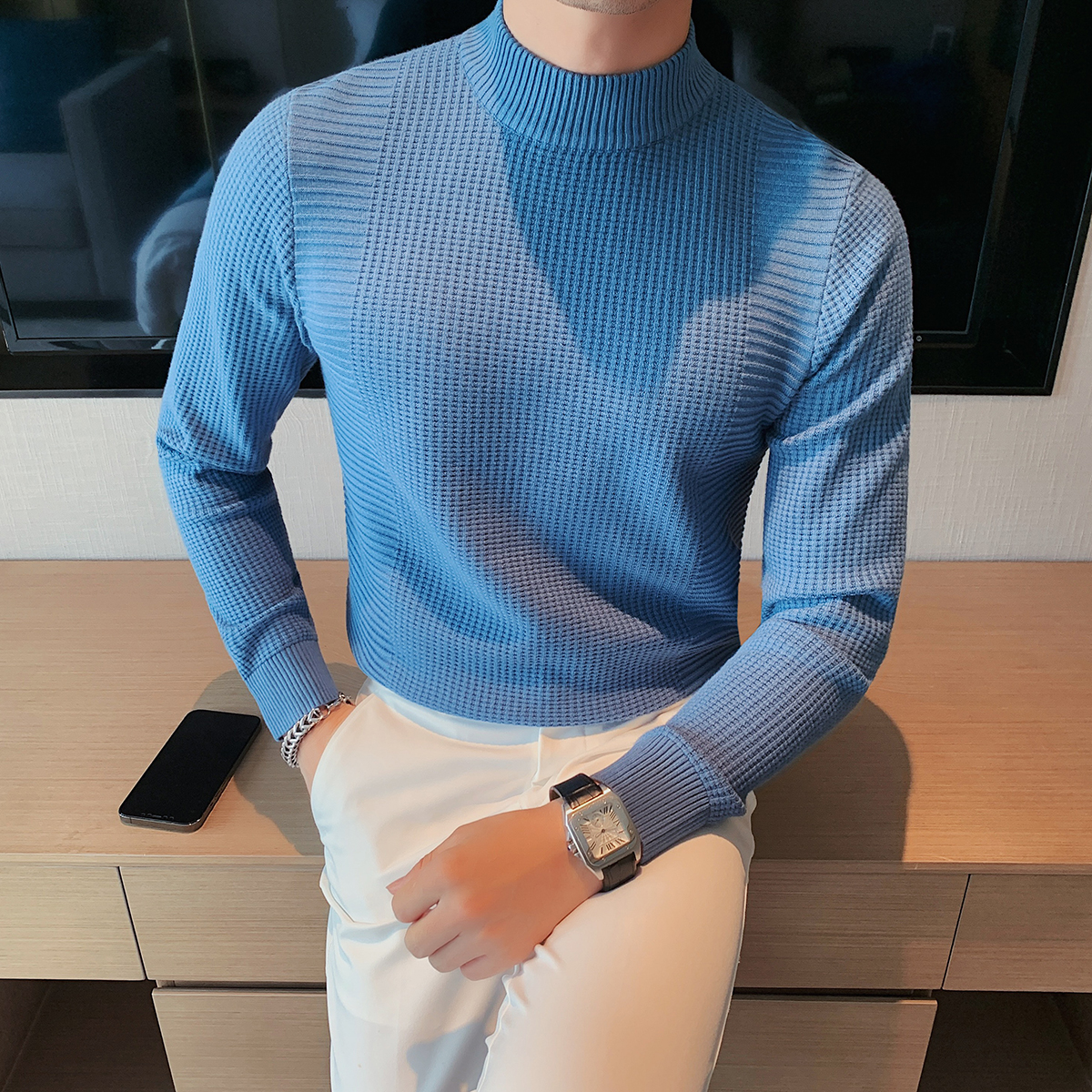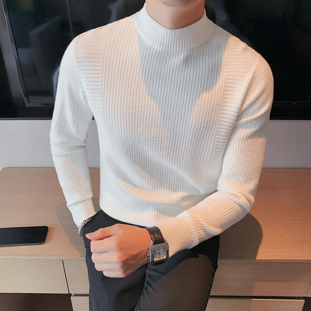 Удерживающий тепло приятный телу трендовый трикотажный свитер для отдыха, высокий воротник, увеличенная толщина