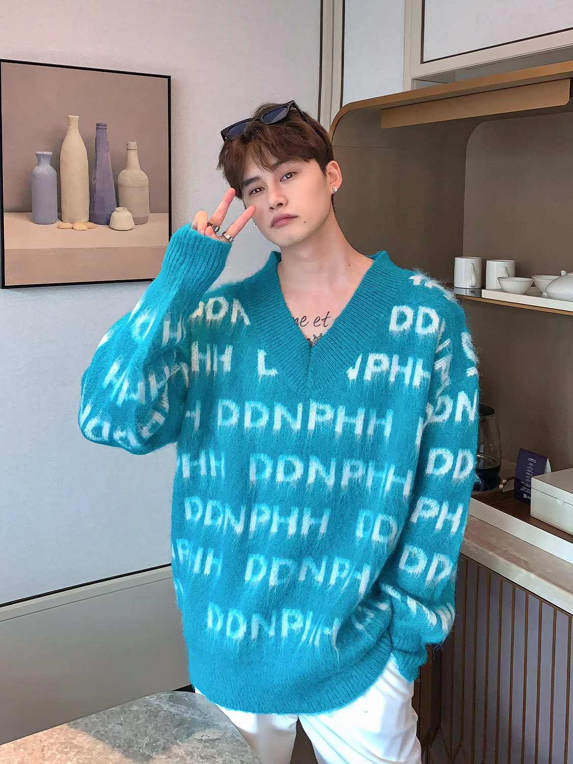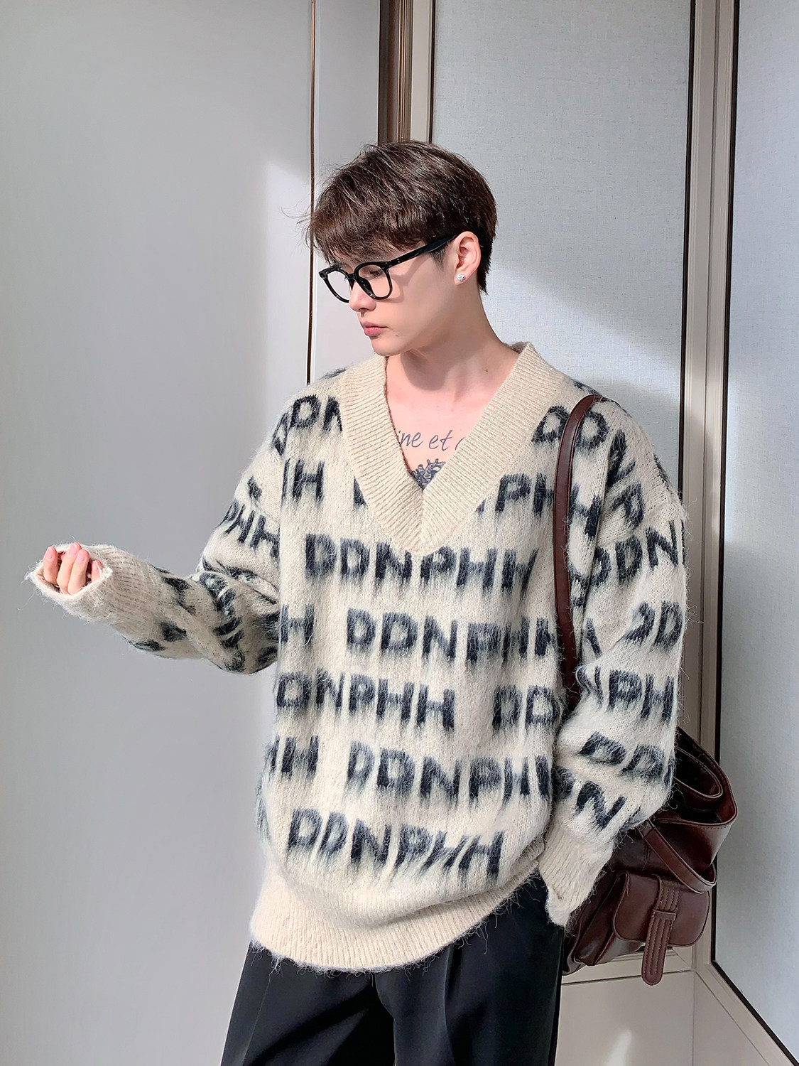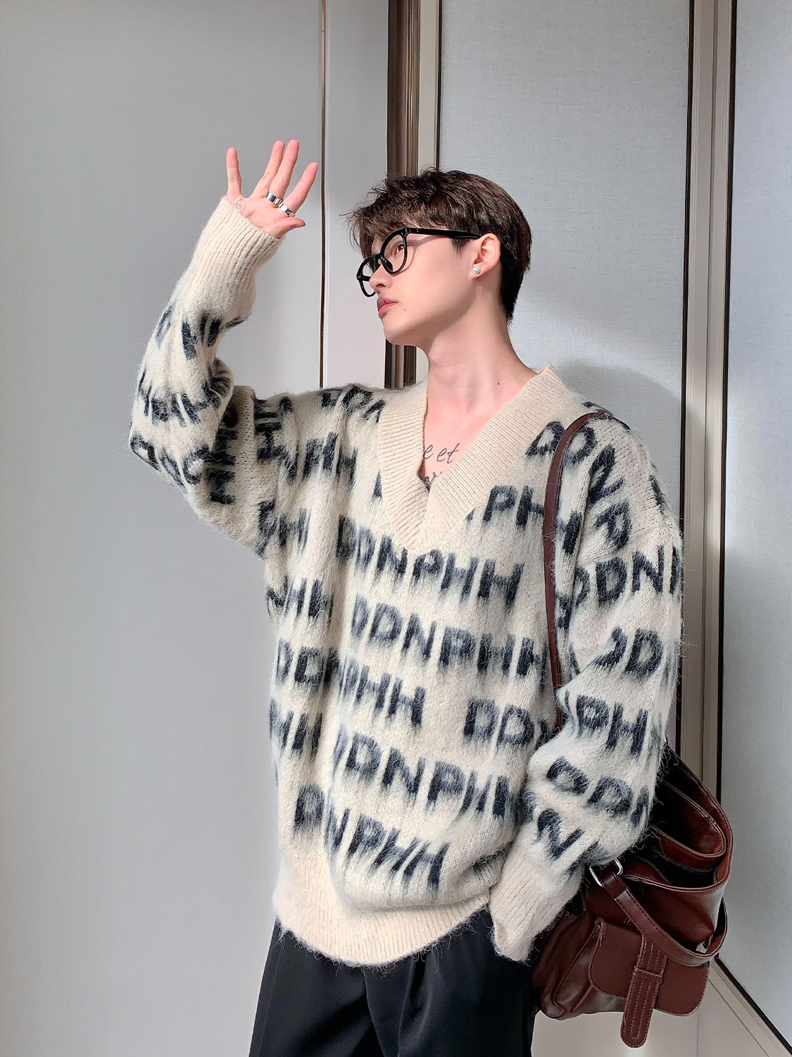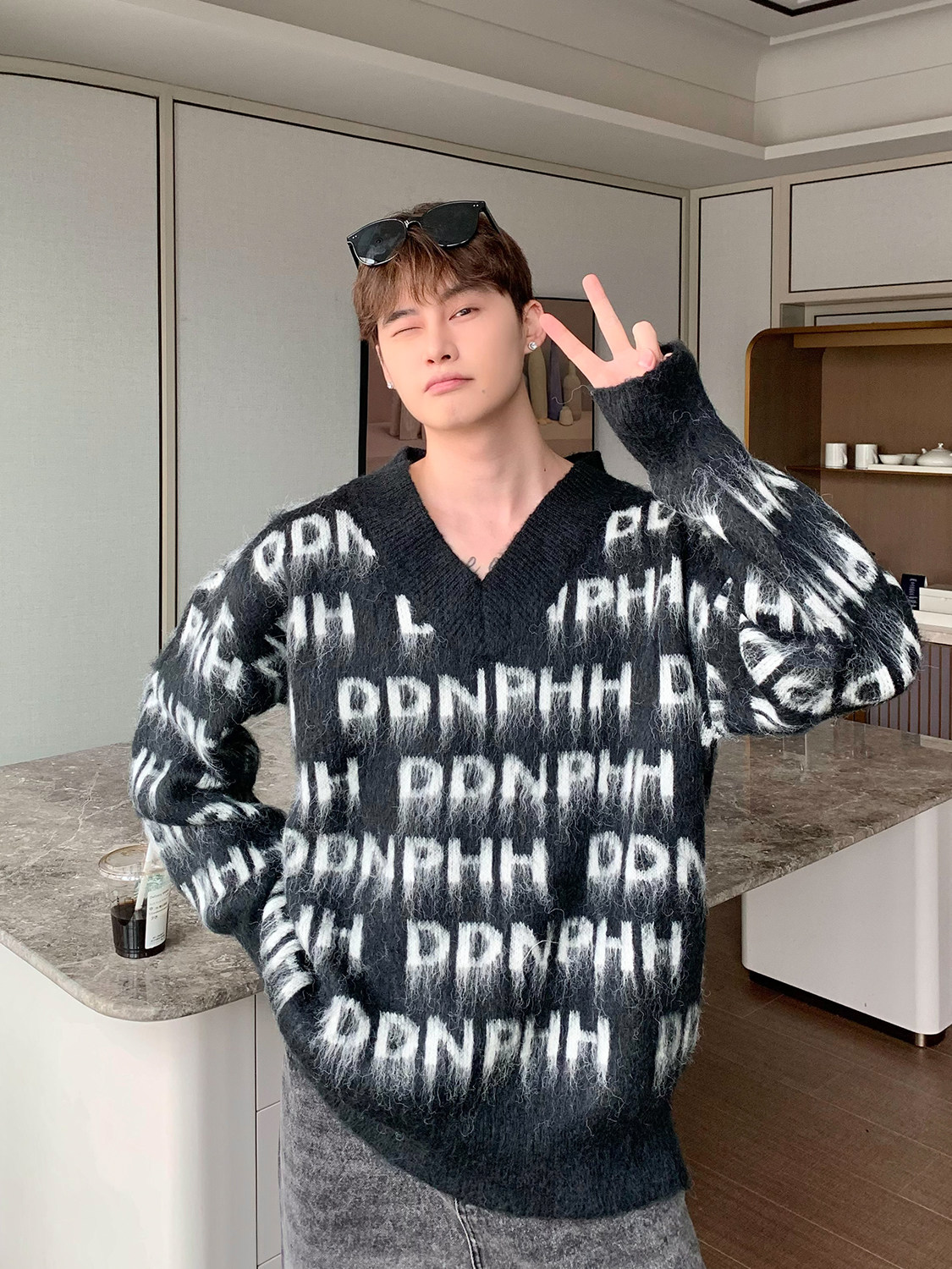 Трикотажный зимний брендовый свитер, оверсайз, для влюбленных