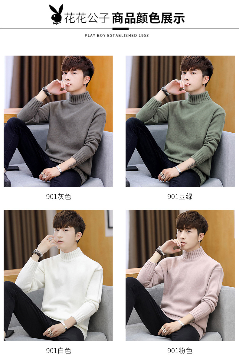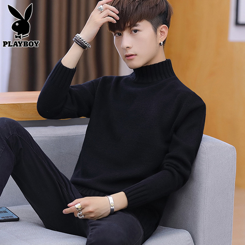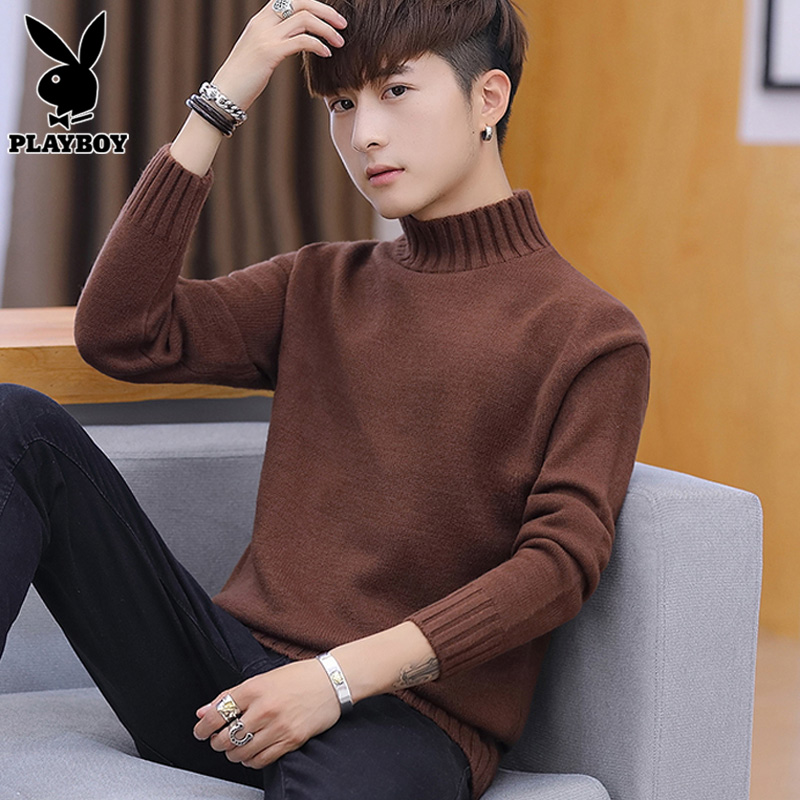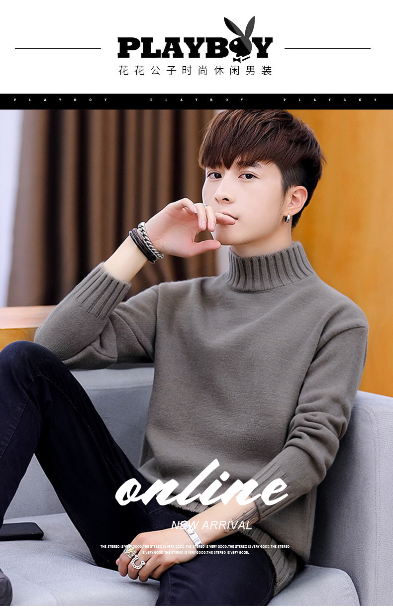 Playboy, мужской демисезонный трикотажный свитер для отдыха, высокий воротник, осенний