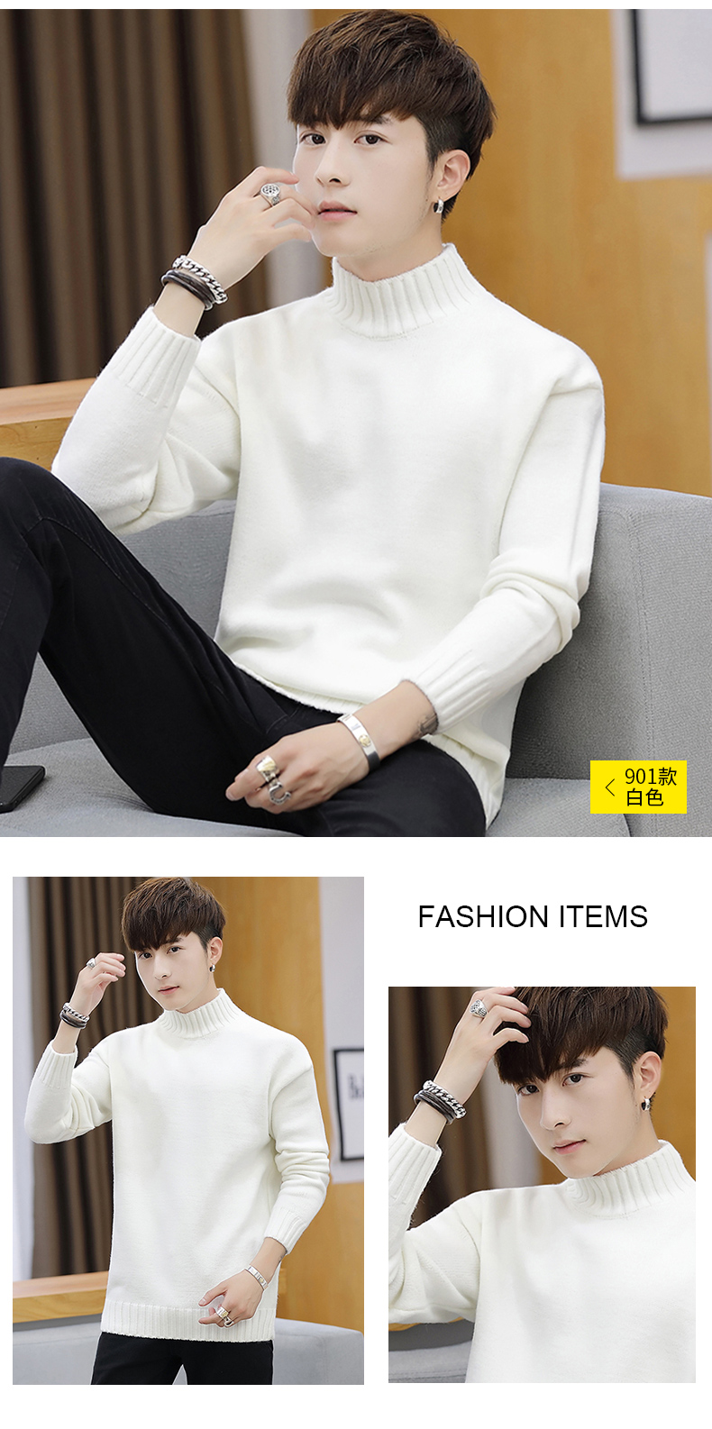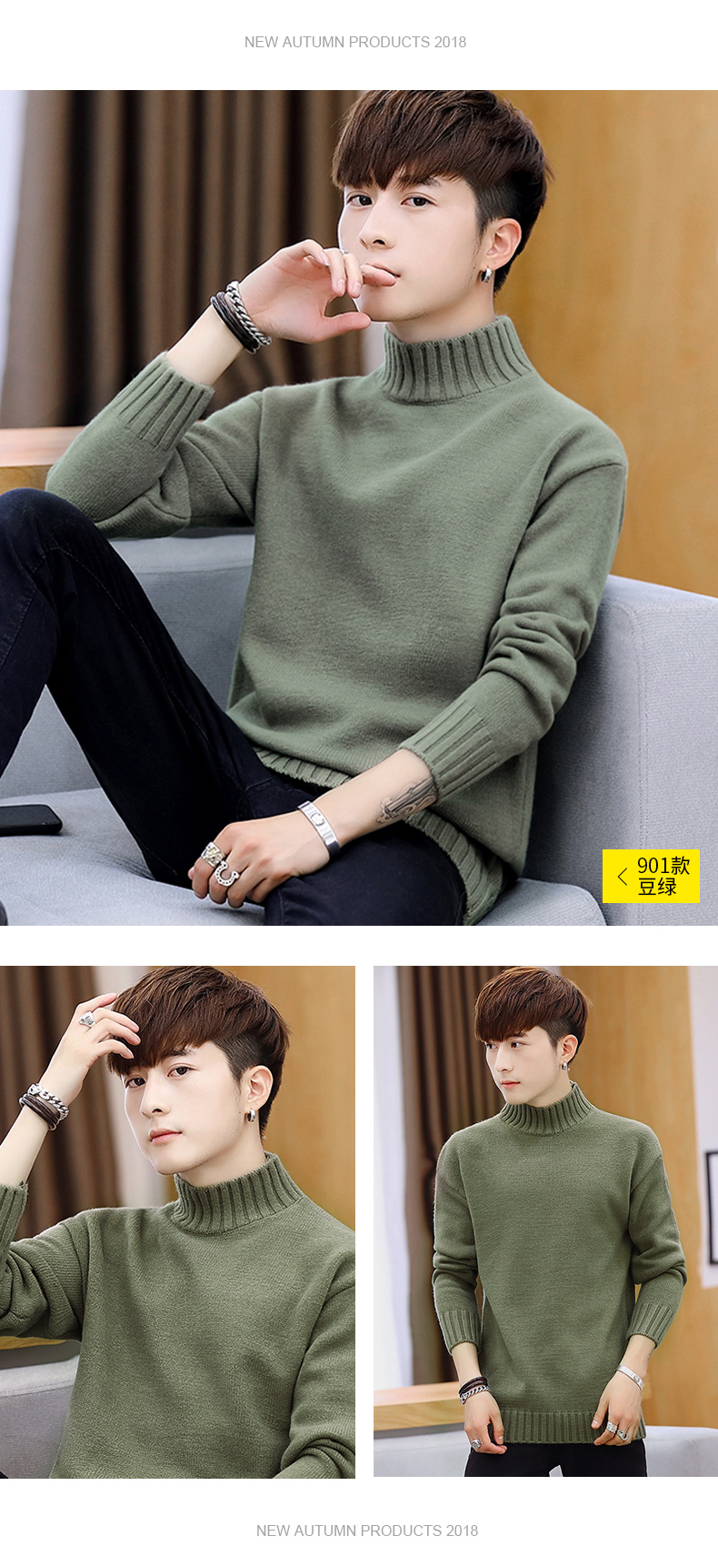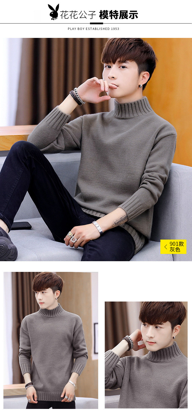 Playboy, мужской демисезонный трикотажный свитер для отдыха, высокий воротник, осенний