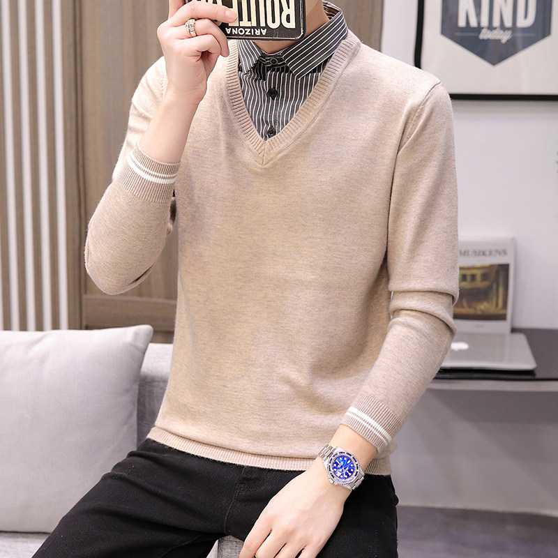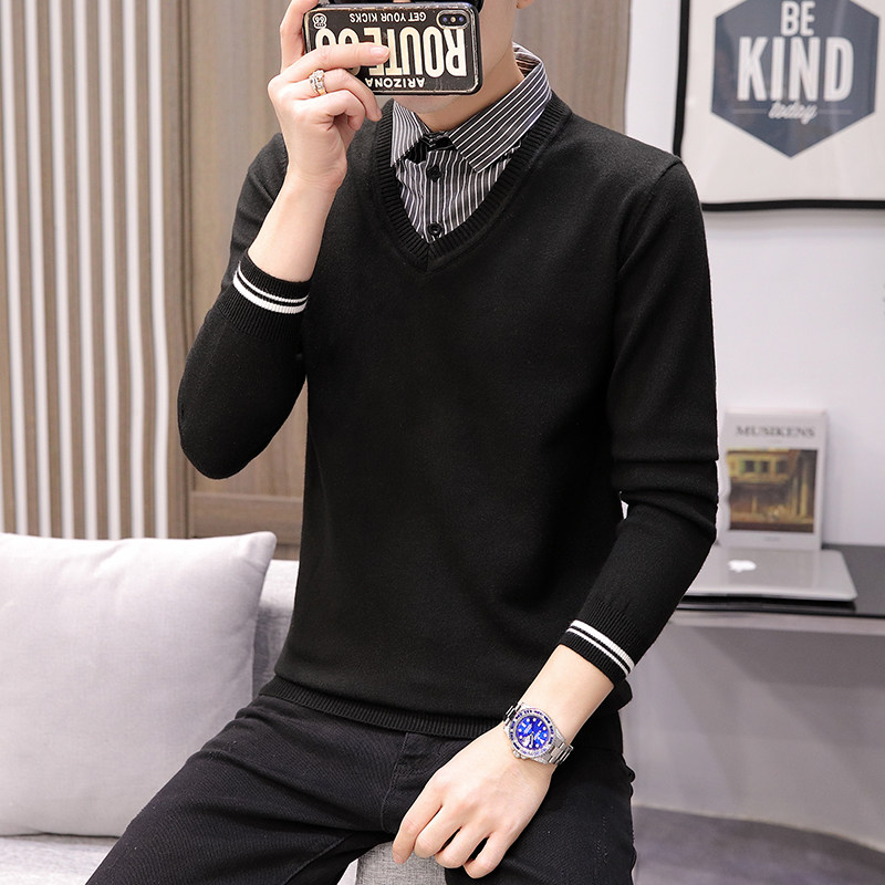 Демисезонный комплект, рубашка, трикотажный свитер, имитация рубашки