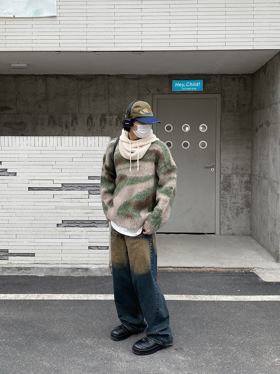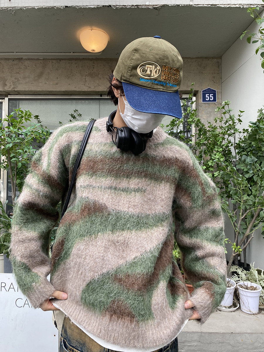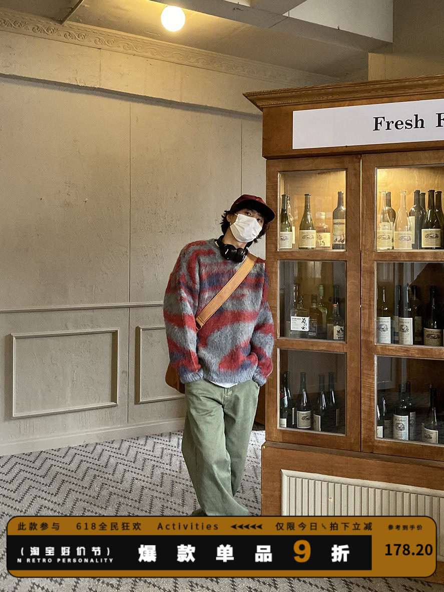 Ретро дизайнерский трикотажный свитер с круглым воротником, в американском стиле, для влюбленных, тренд сезона, увеличенная толщина