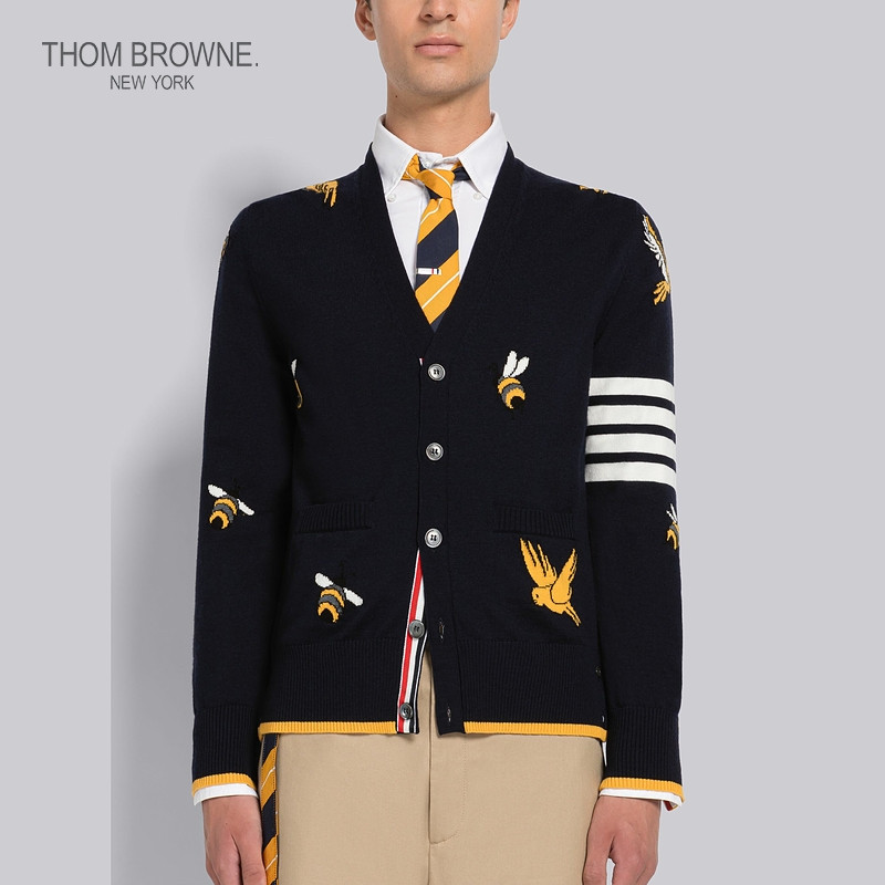 [Новый продукт] Thom Browne Men 2023 Весна и летняя классическая четырехнологичная птица и пчела V -Neck Рубашка