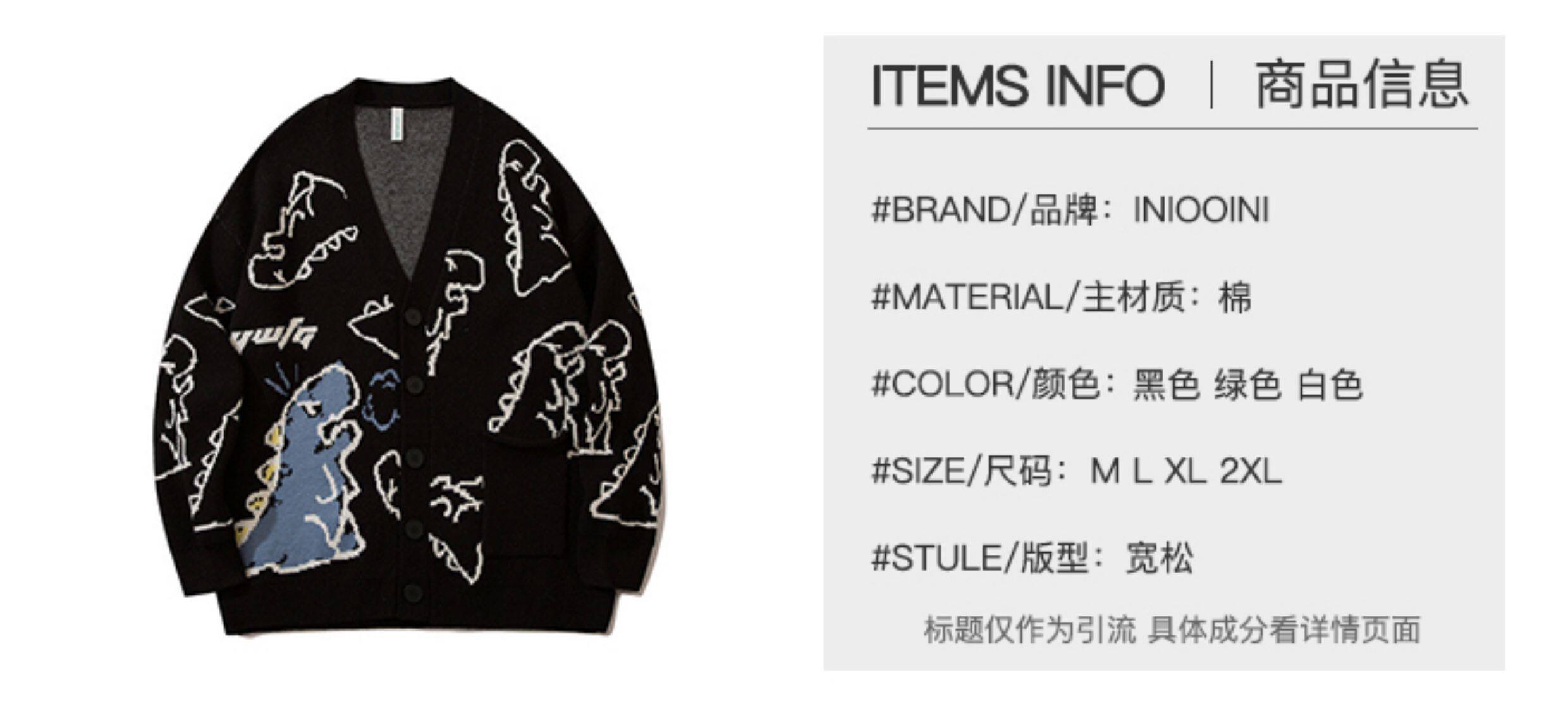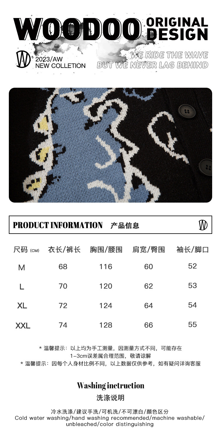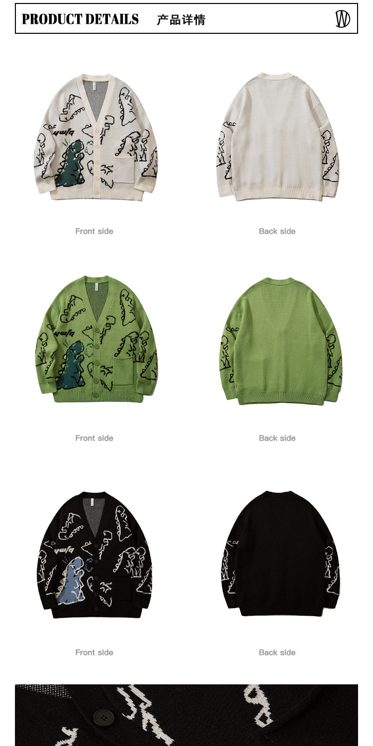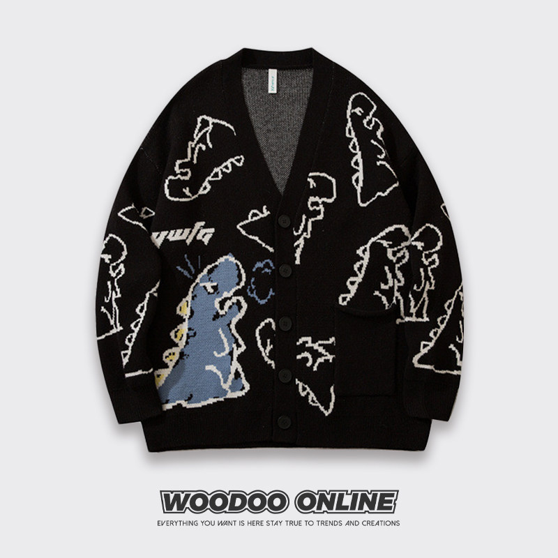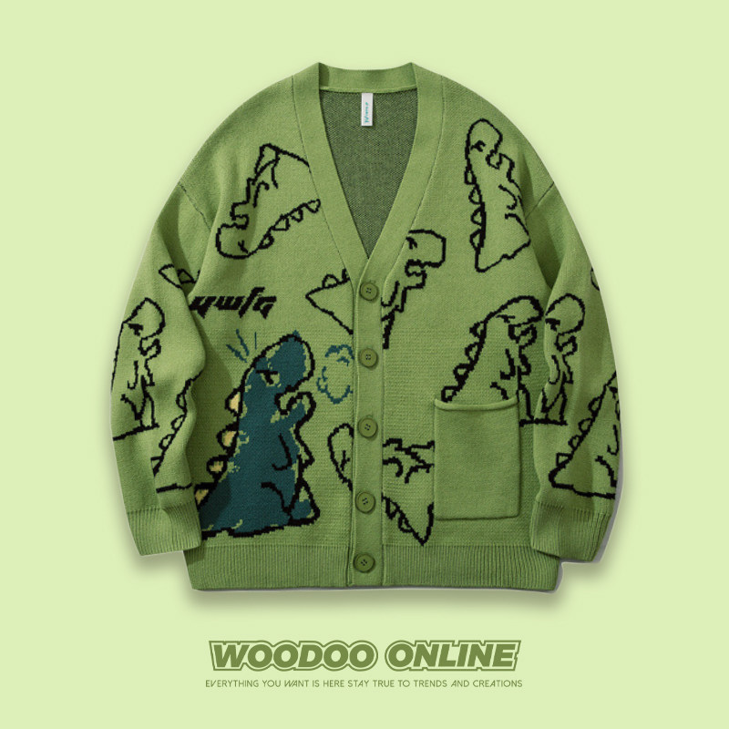 Дыхание дракона WOODOO дизайнерский бренд колледжа стиль мультфильм динозавр кардиган мужской и женский свитер