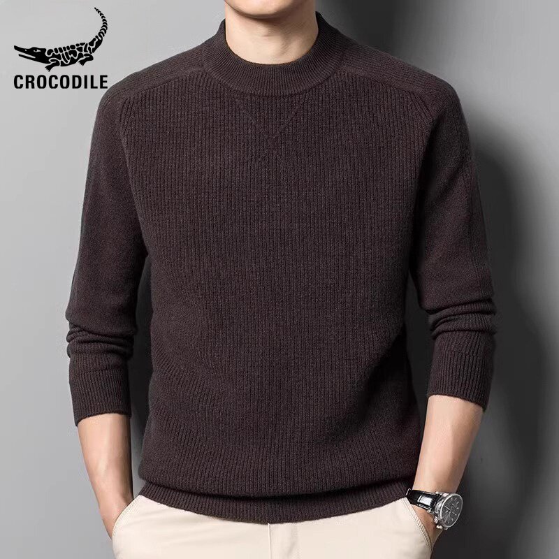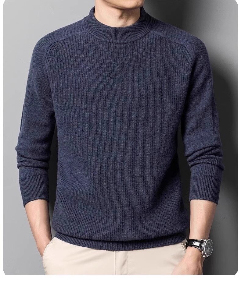Мужской шерстяной базовый демисезонный свитер, высокий воротник, увеличенная толщина, в корейском стиле