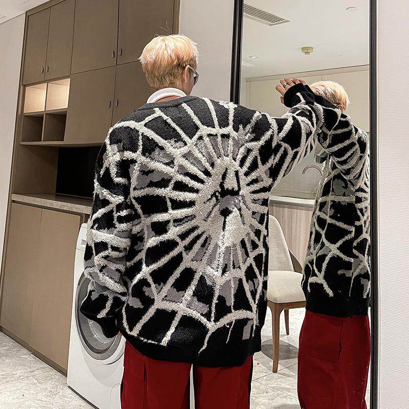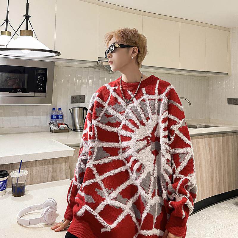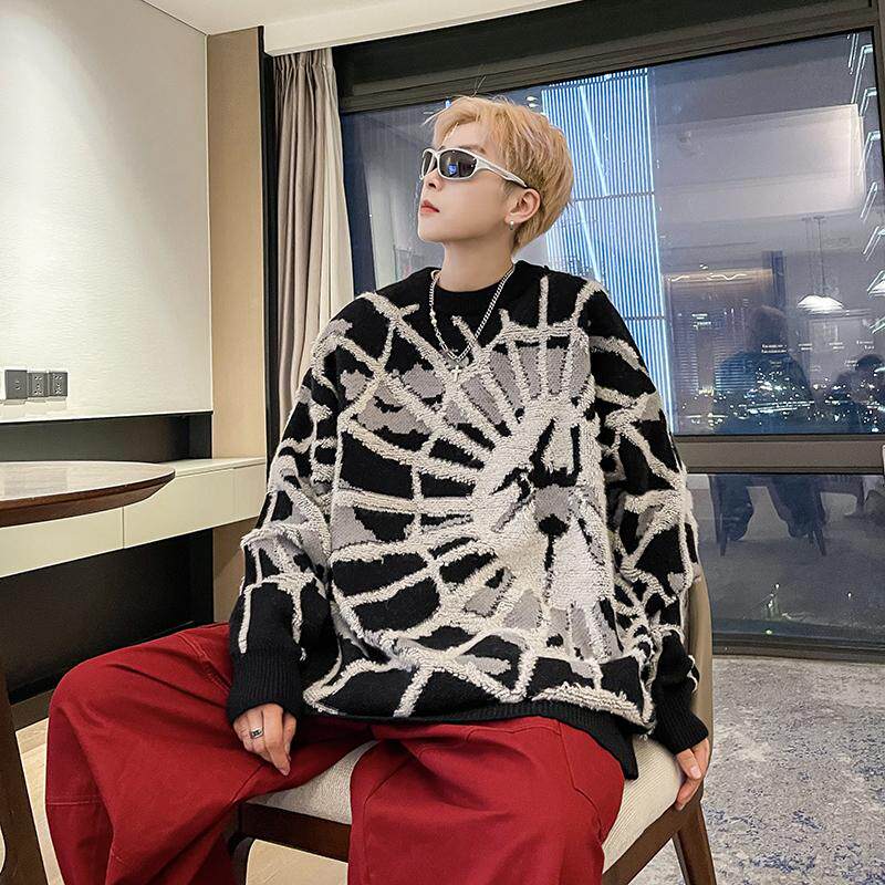 Мужской демисезонный трикотажный свитер, в американском стиле, оверсайз