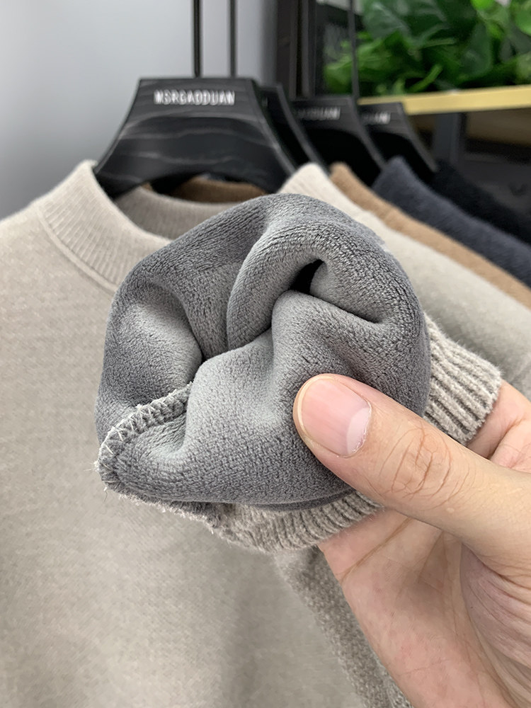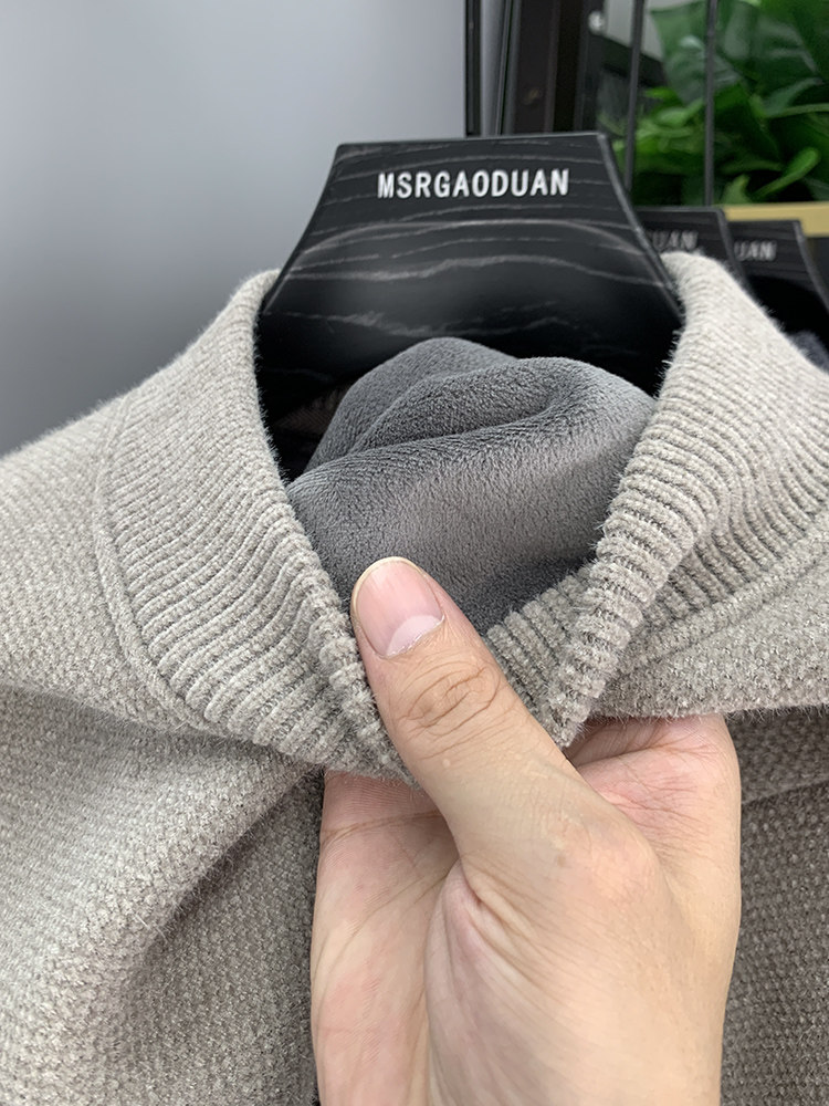 Бархатный демисезонный удерживающий тепло утепленный трикотажный базовый приятный телу свитер, высокий воротник