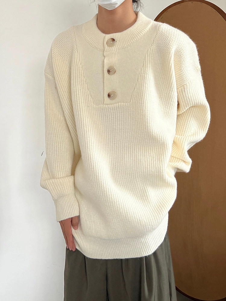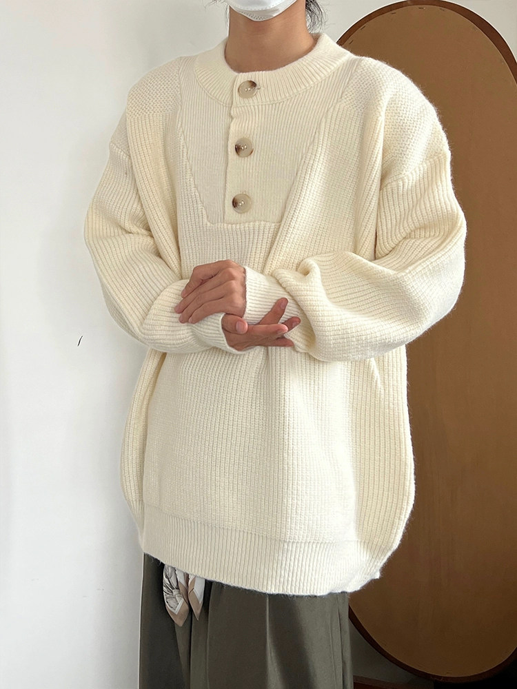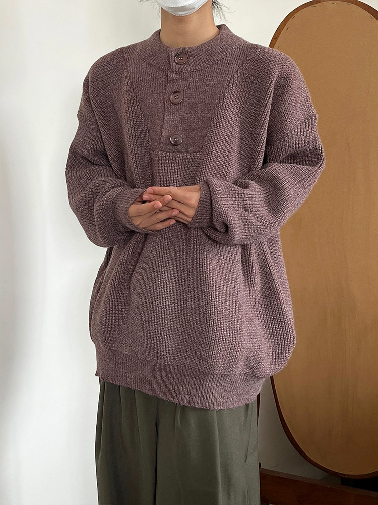 Ретро трикотажный демисезонный свитер с круглым воротником подходит для мужчин и женщин, свободный крой