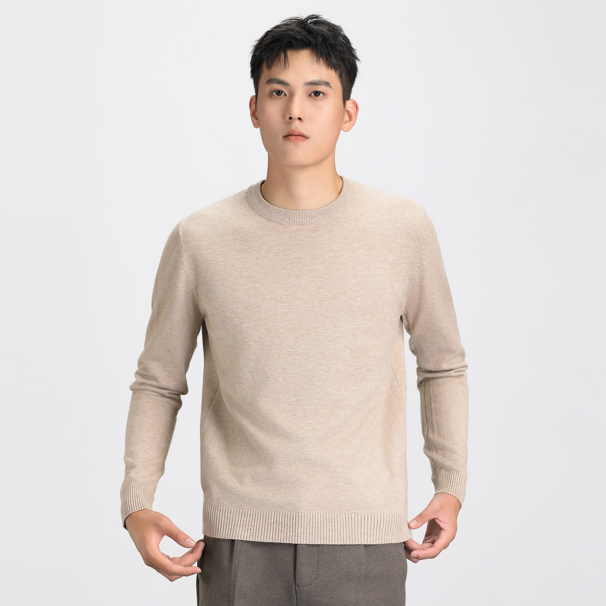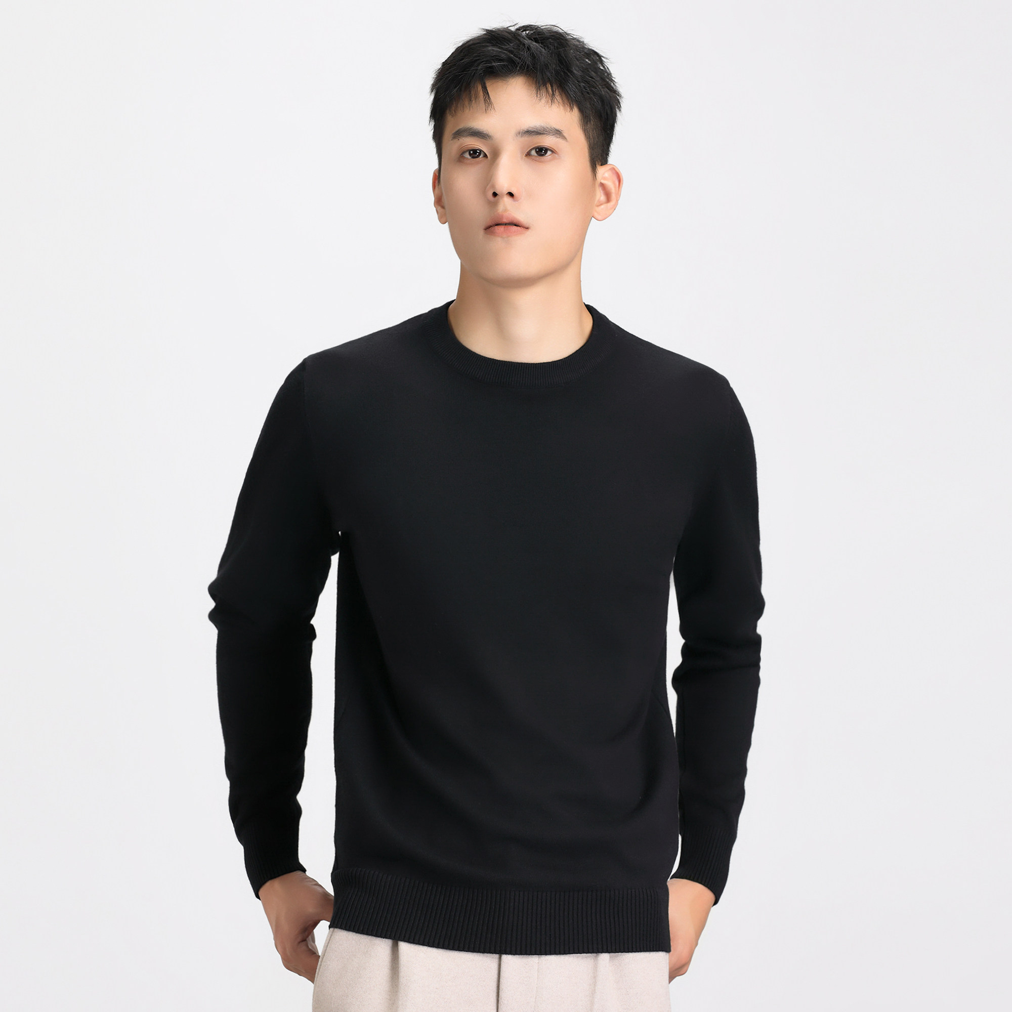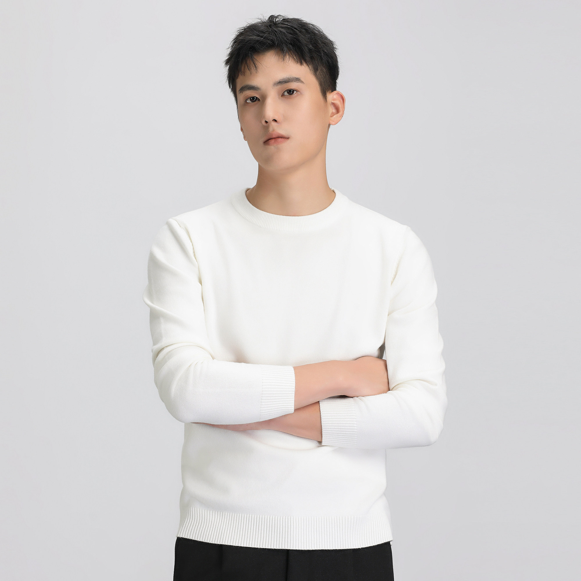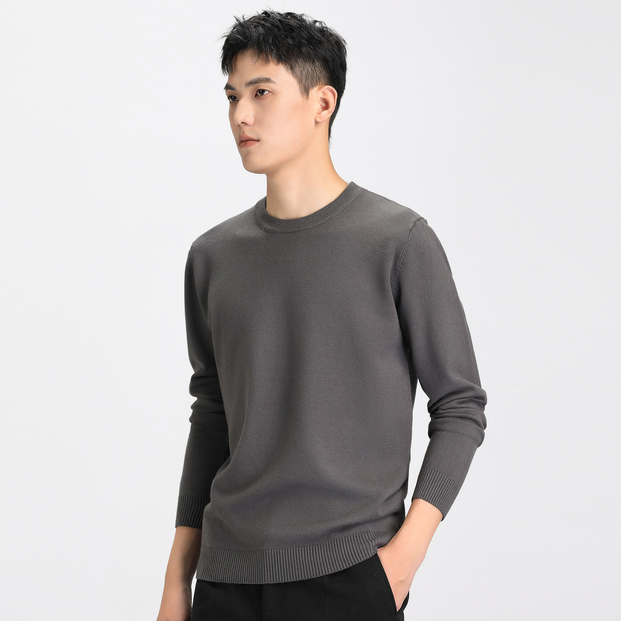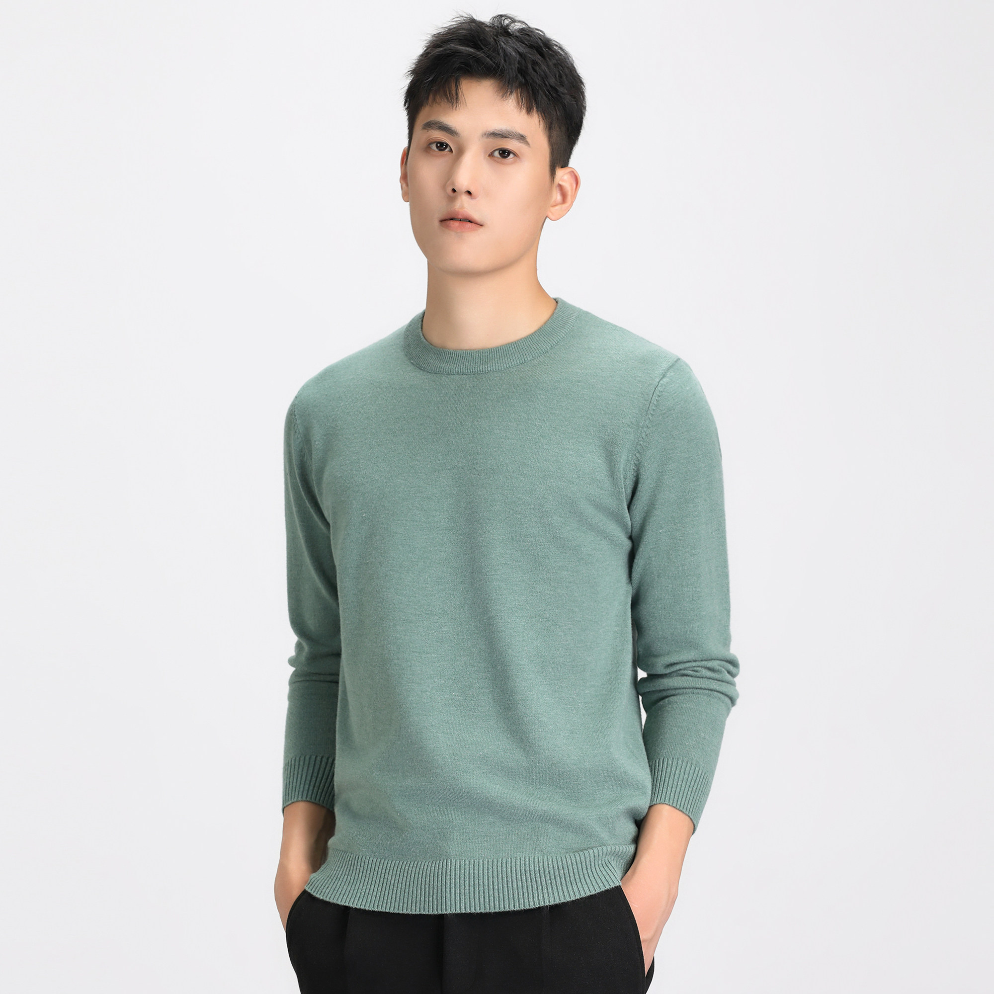 Демисезонный удерживающий тепло трикотажный зимний свитер с круглым воротником