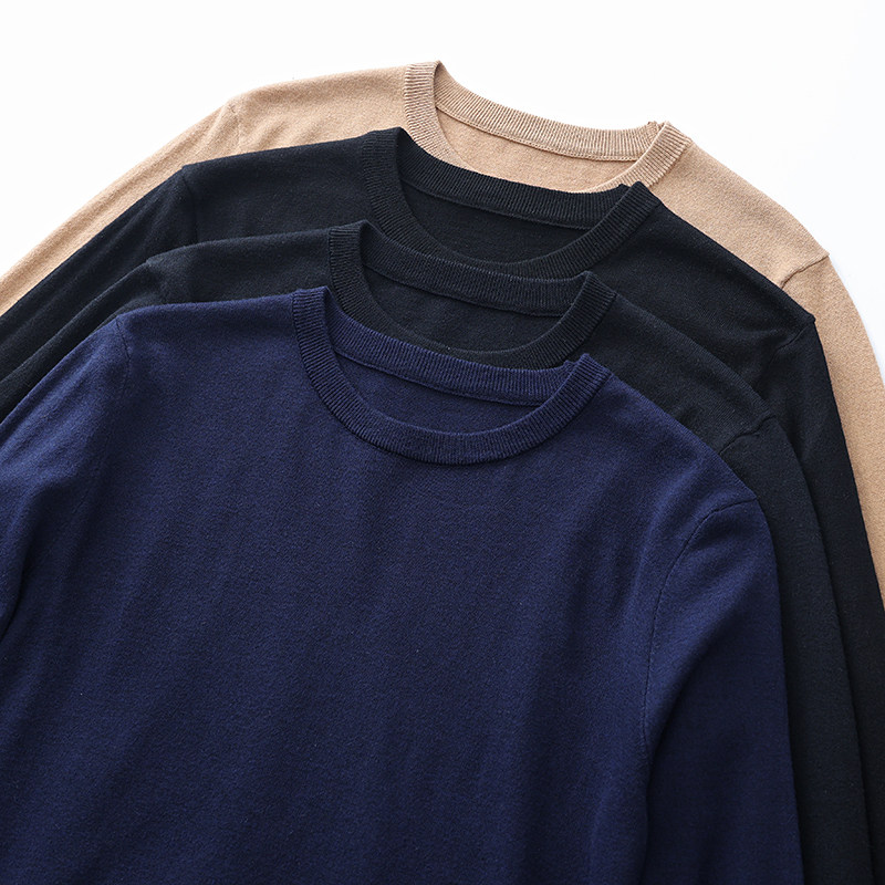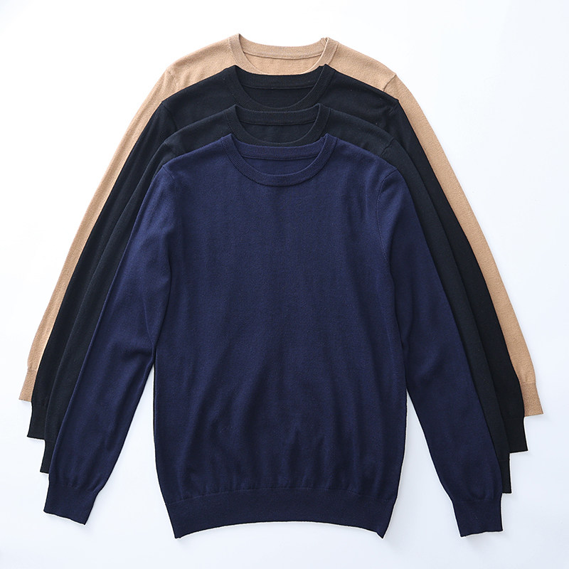 (Трансграничная торговля), мужской тонкий шерстяной демисезонный базовый приятный телу японский ретро трикотажный свитер с круглым воротником