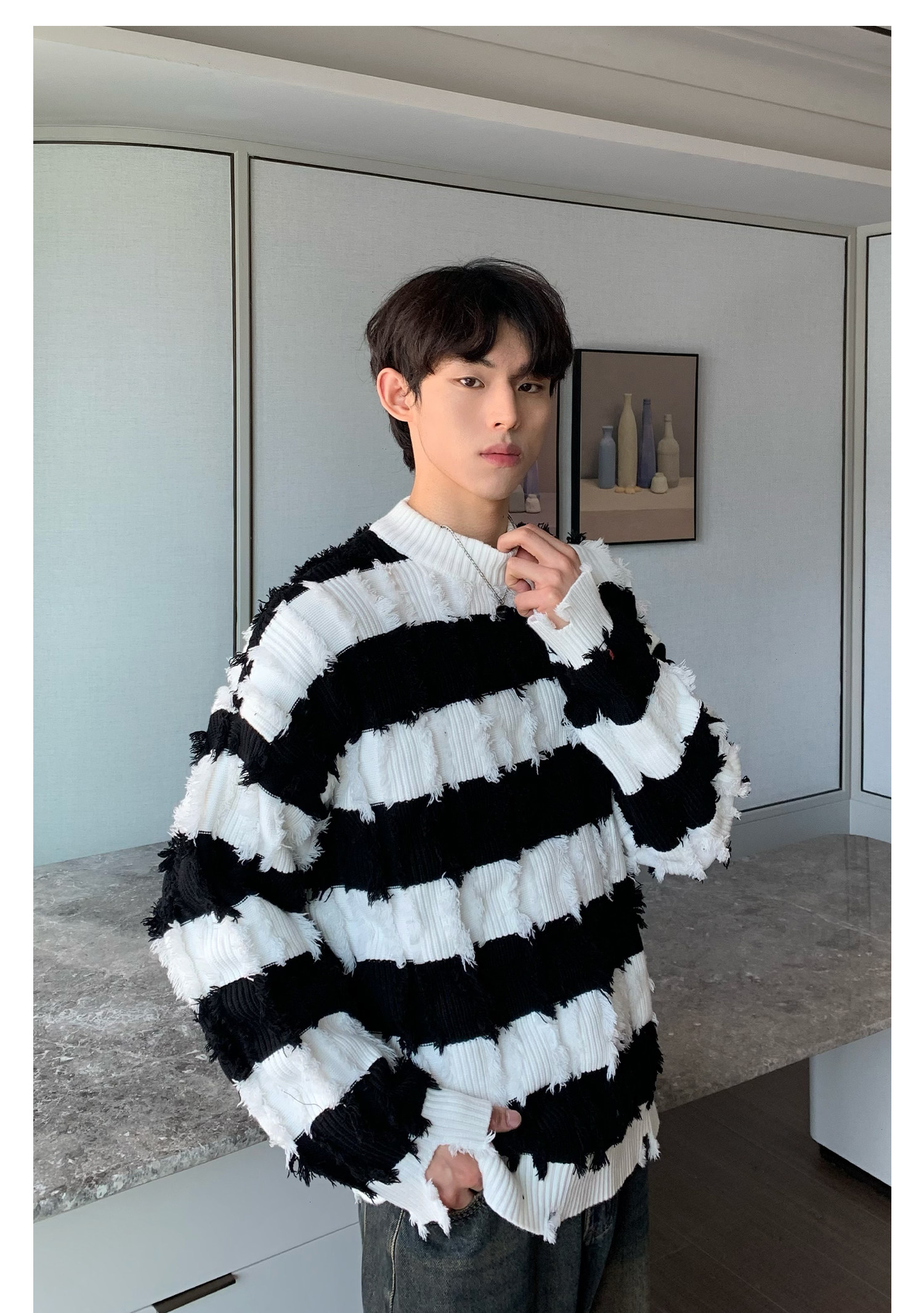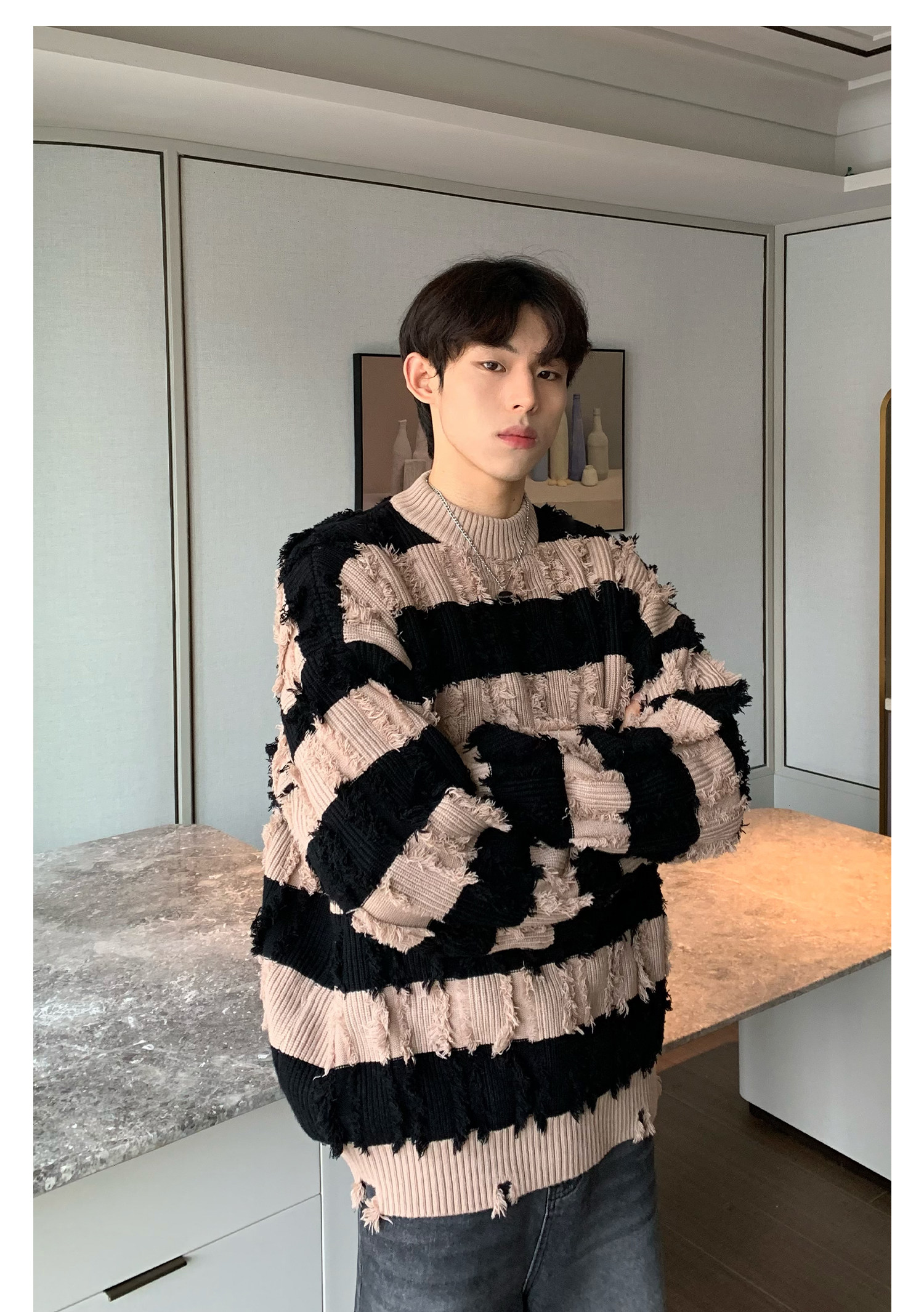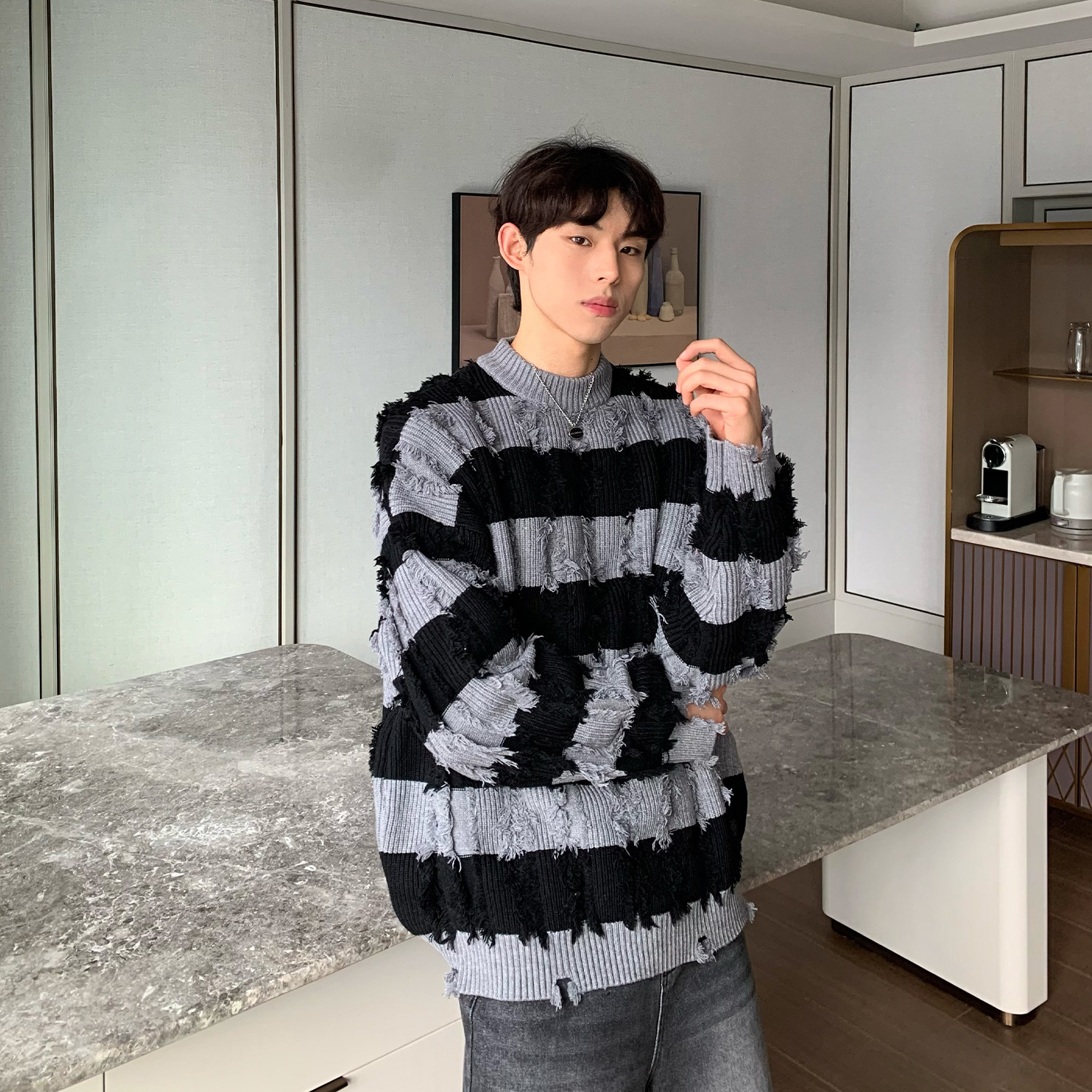Дизайнерский демисезонный трикотажный свитер, тренд сезона, оверсайз