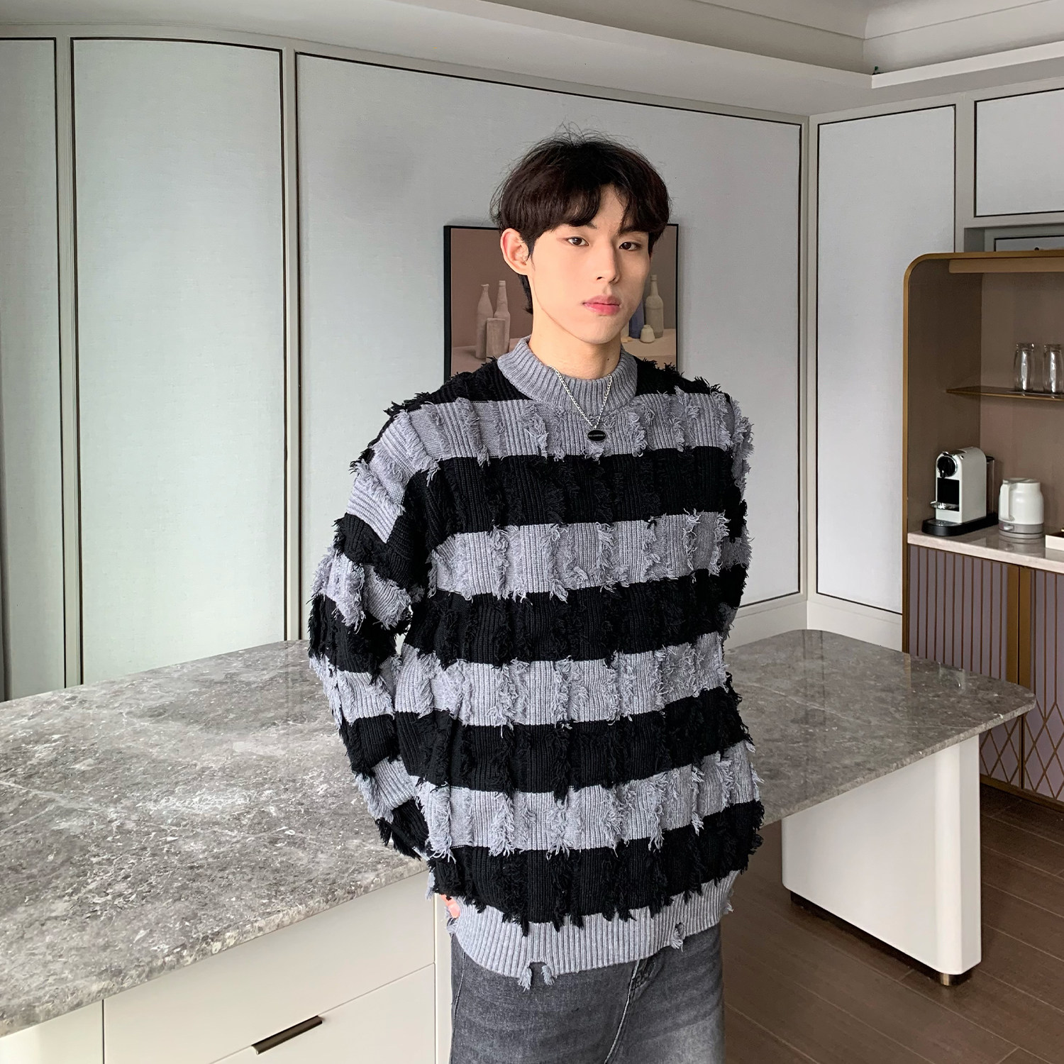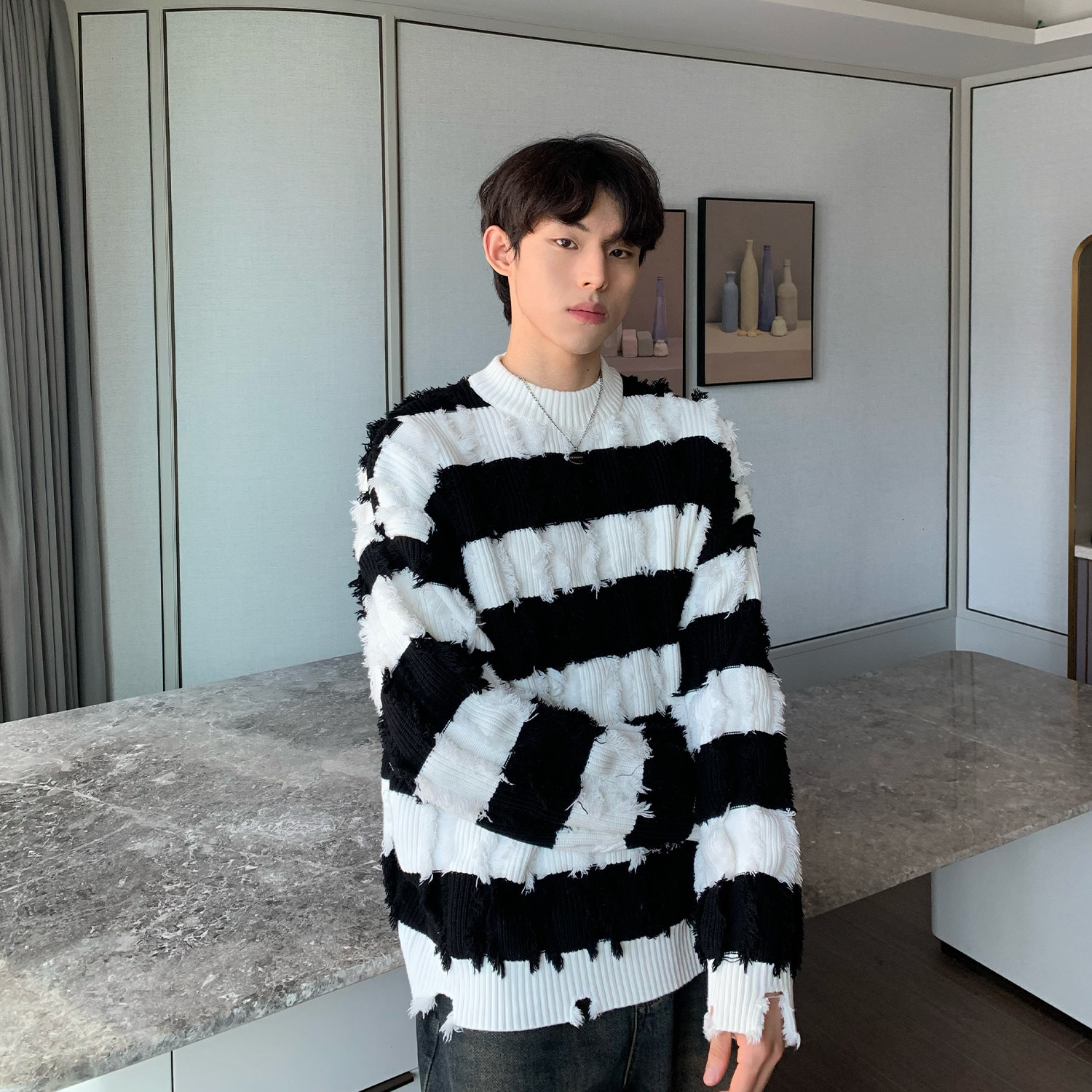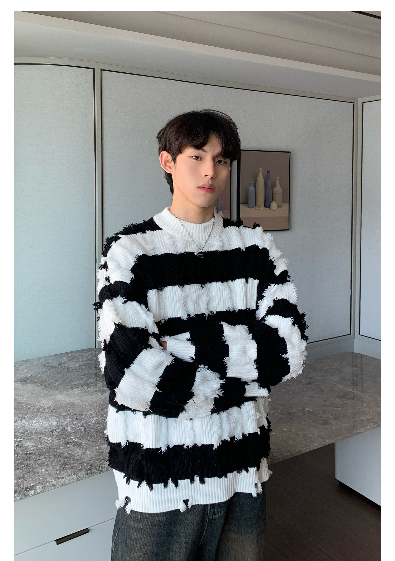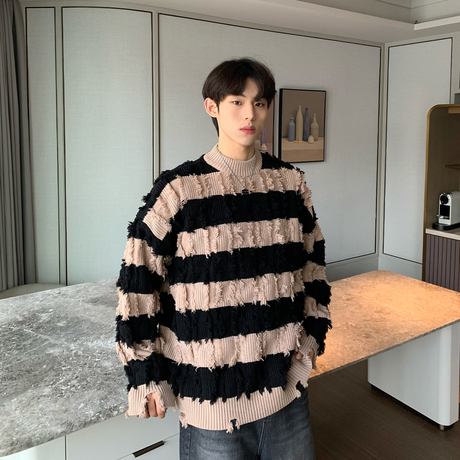 Дизайнерский демисезонный трикотажный свитер, тренд сезона, оверсайз