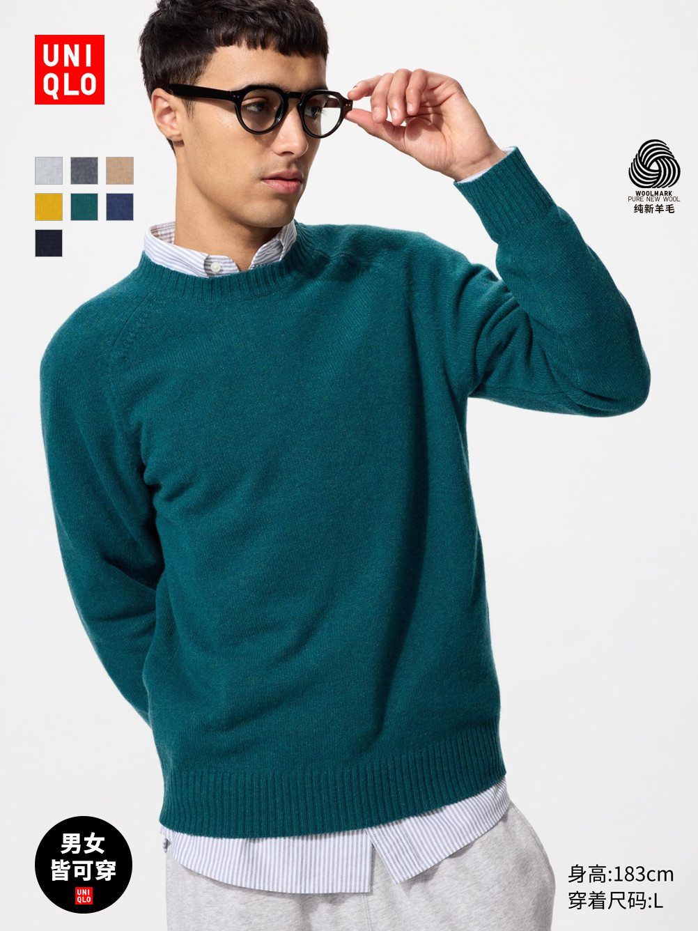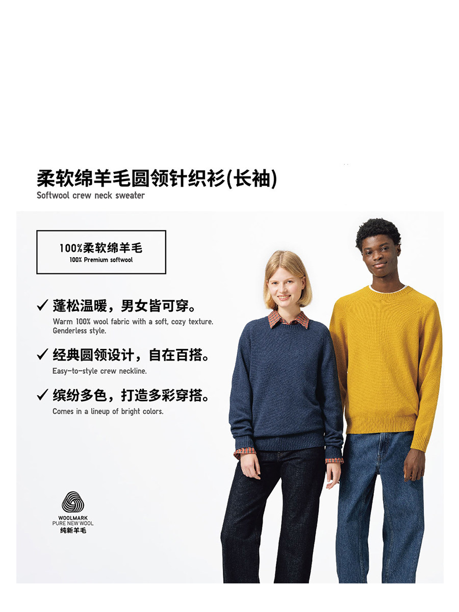 Uniqlo, мягкий шерстяной трикотажный свитер с круглым воротником, лонгслив