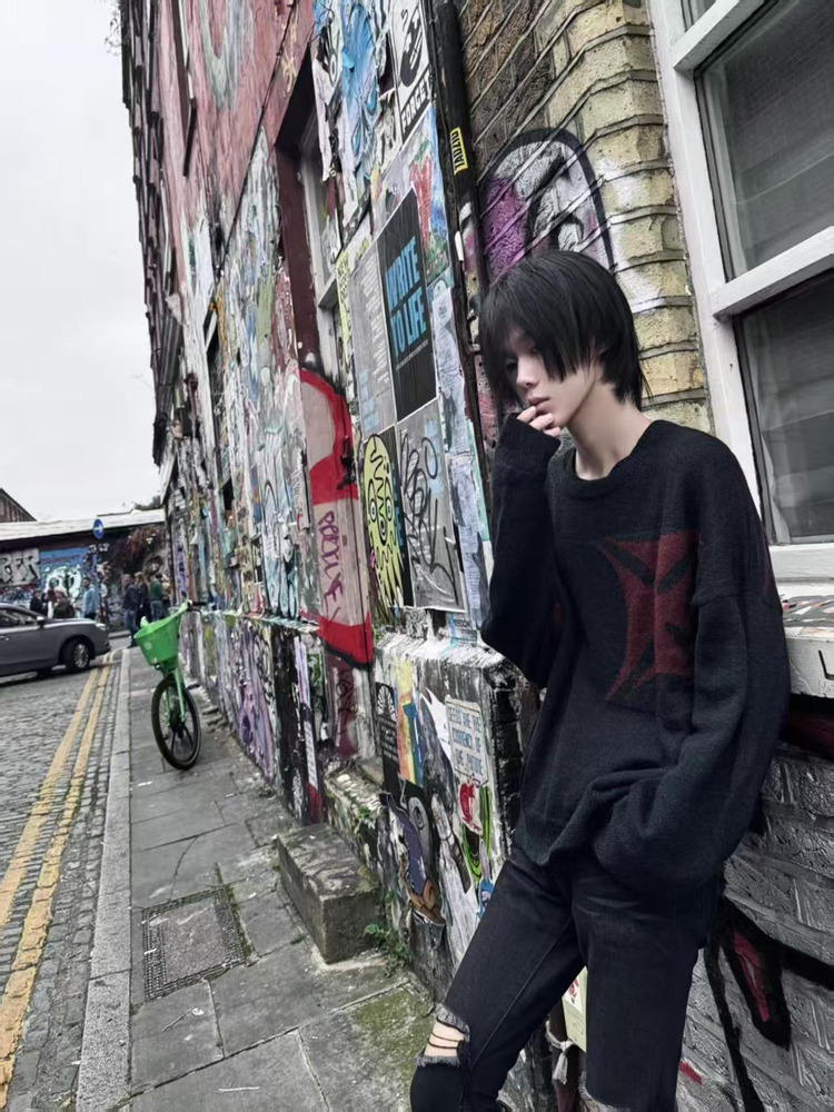 [Та же серия Лорен] ERD22FW жаккардовый свитер из мохера с алым крестом, пуловер с круглым вырезом, свитер