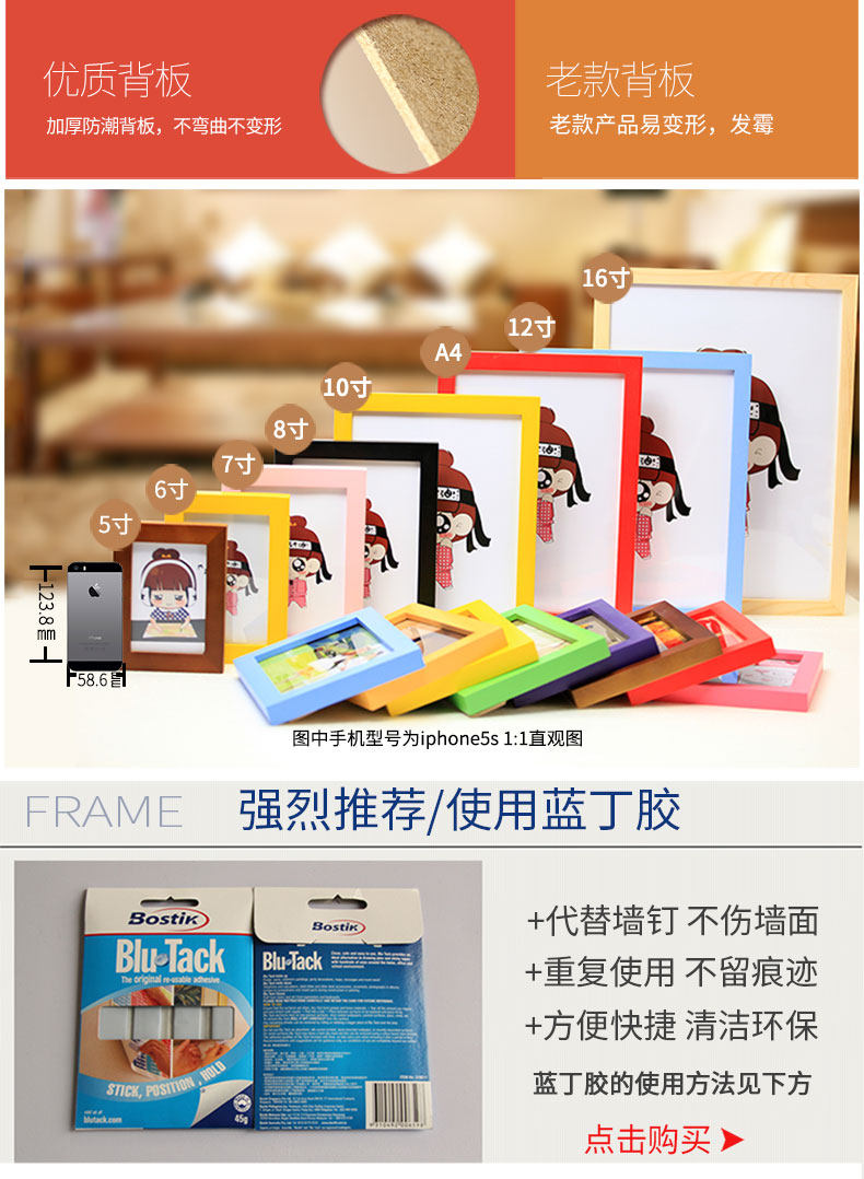 Черная настенная персиковая белая фоторамка из натурального дерева, 10 дюймов