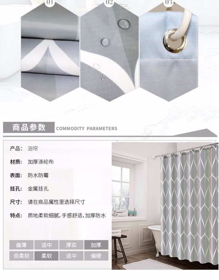 Штора, комплект, водонепроницаемая ткань с разделителями, увеличенная толщина, из полиэстера