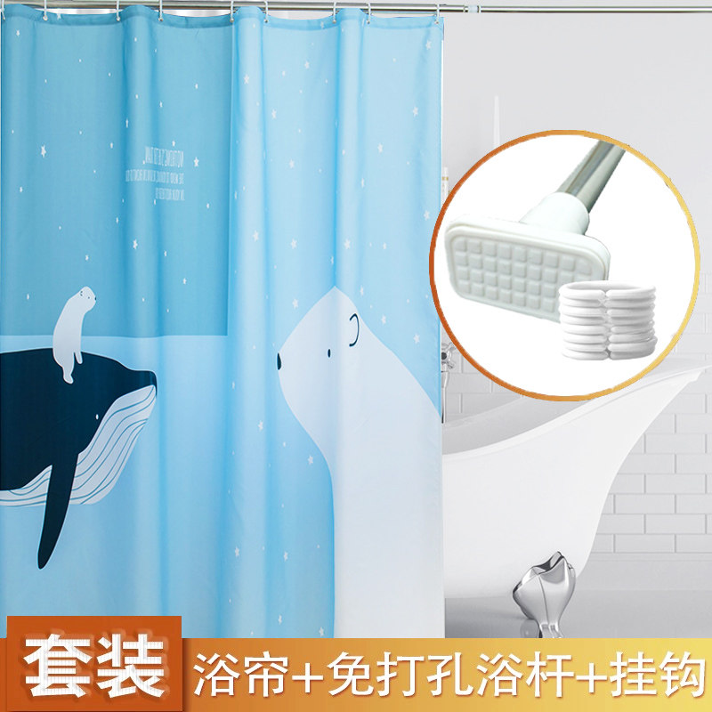 Занавеска для душа без перфорации, утолщенная, устойчивая к плесени и водонепроницаемая полиэфирная ткань, занавеска для ванной комнаты, комплект занавесок для душевой комнаты