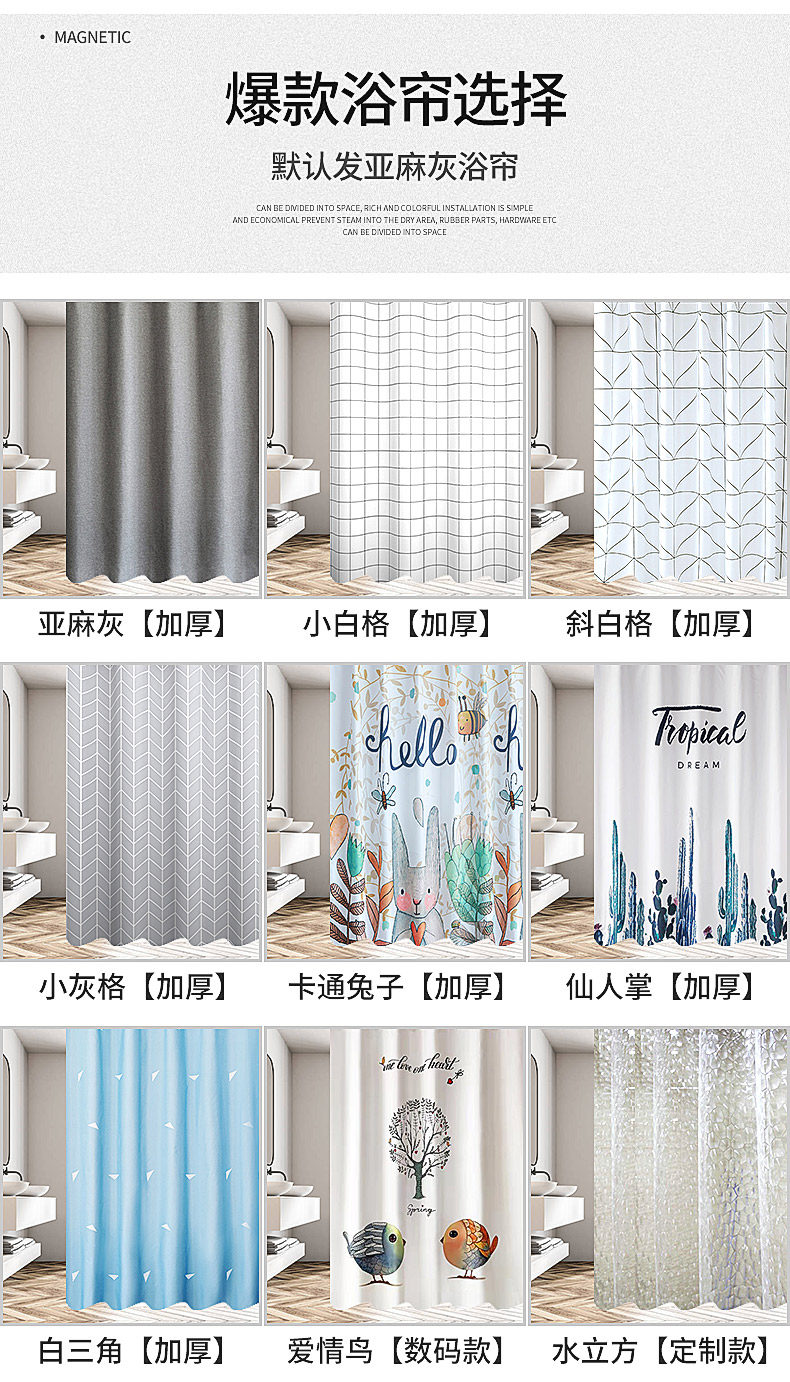 Магнитная штора, изогнутый комплект, брезент для ванны, увеличенная толщина