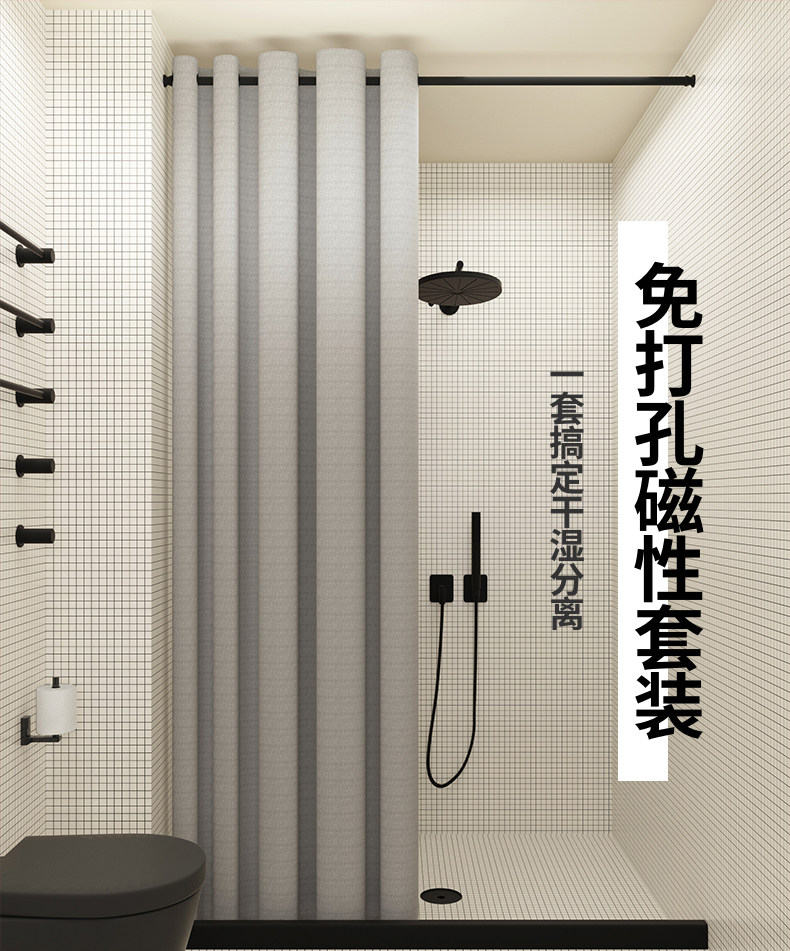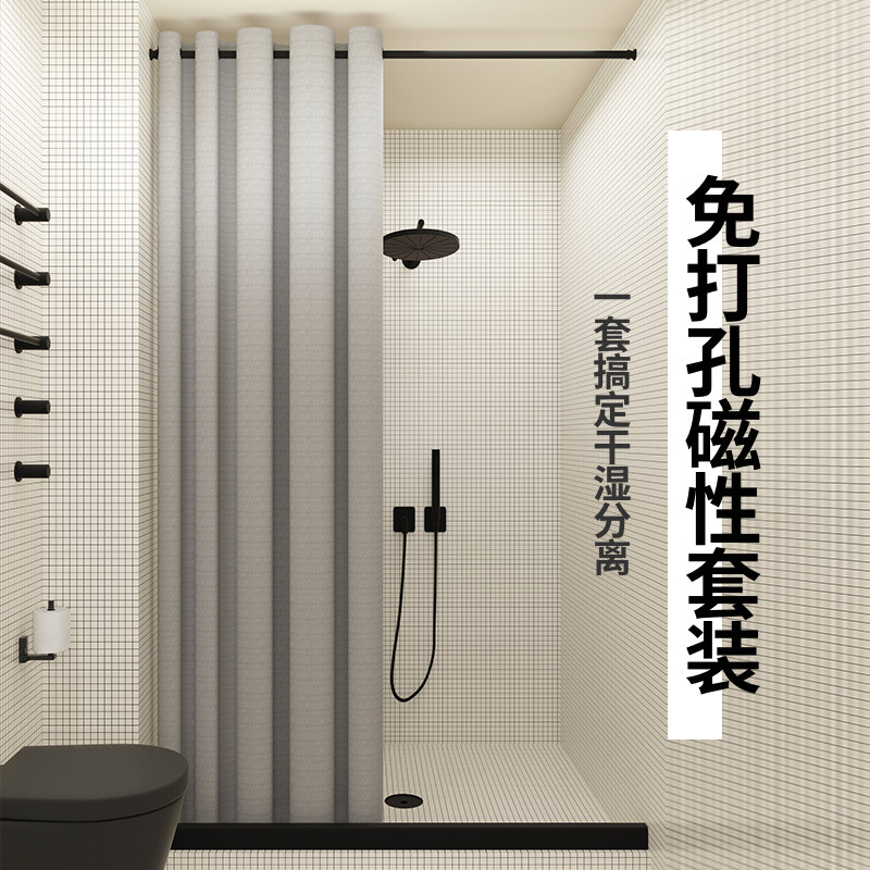 雅汐 Магнитная ванная завеса для туалетной водонепроницаемой ткани для ванной комнаты для занавески занавеса для занавески для блокировки вода и плесень плесень, без путаницы
