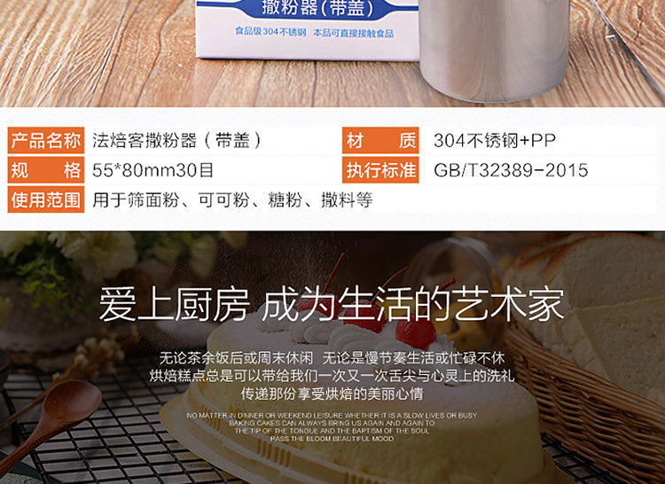 法焙客 Трубка из муки из нержавеющей стали с разбрызгиванием муки плюс из тонкого сахарного порошка для приправы приправы приправы приправы для выпечки
